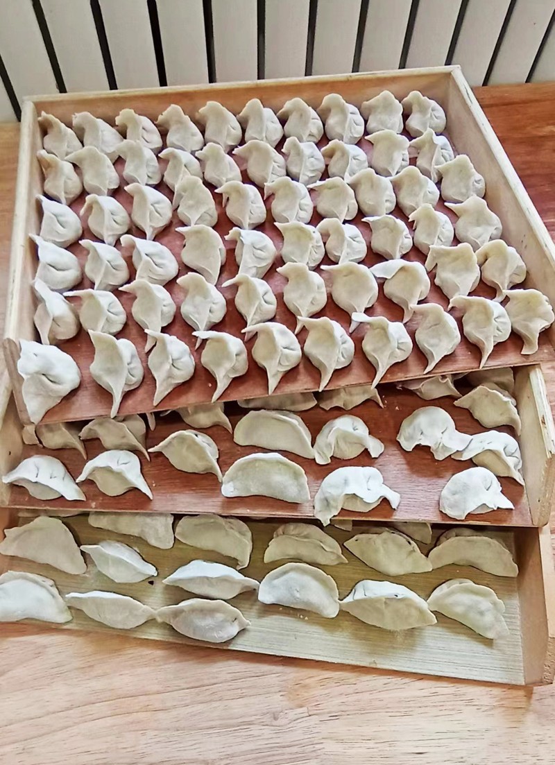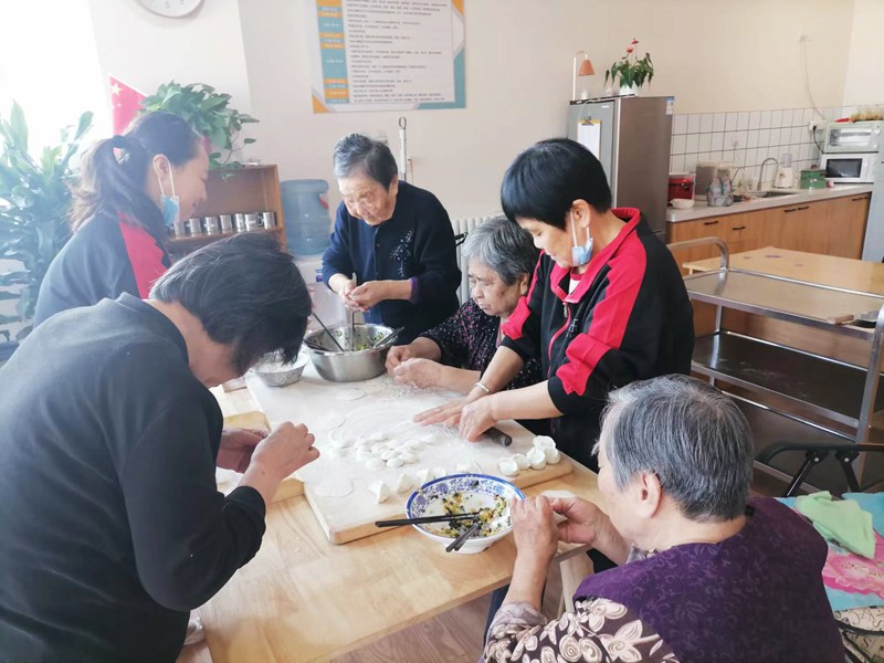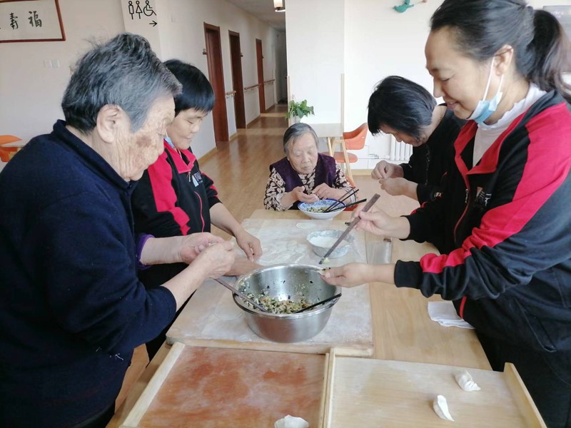 滨海分院的院长和工作人员一起动手包饺子;沧州分院虽然还在封院期间,但是长者们已经按捺不住这一份仪式感,和工作人员一起动手包起来。饺子的意义是团圆,一起包饺子,聊家常,更是流淌在大家共同准备食材过程中那一份亲密。