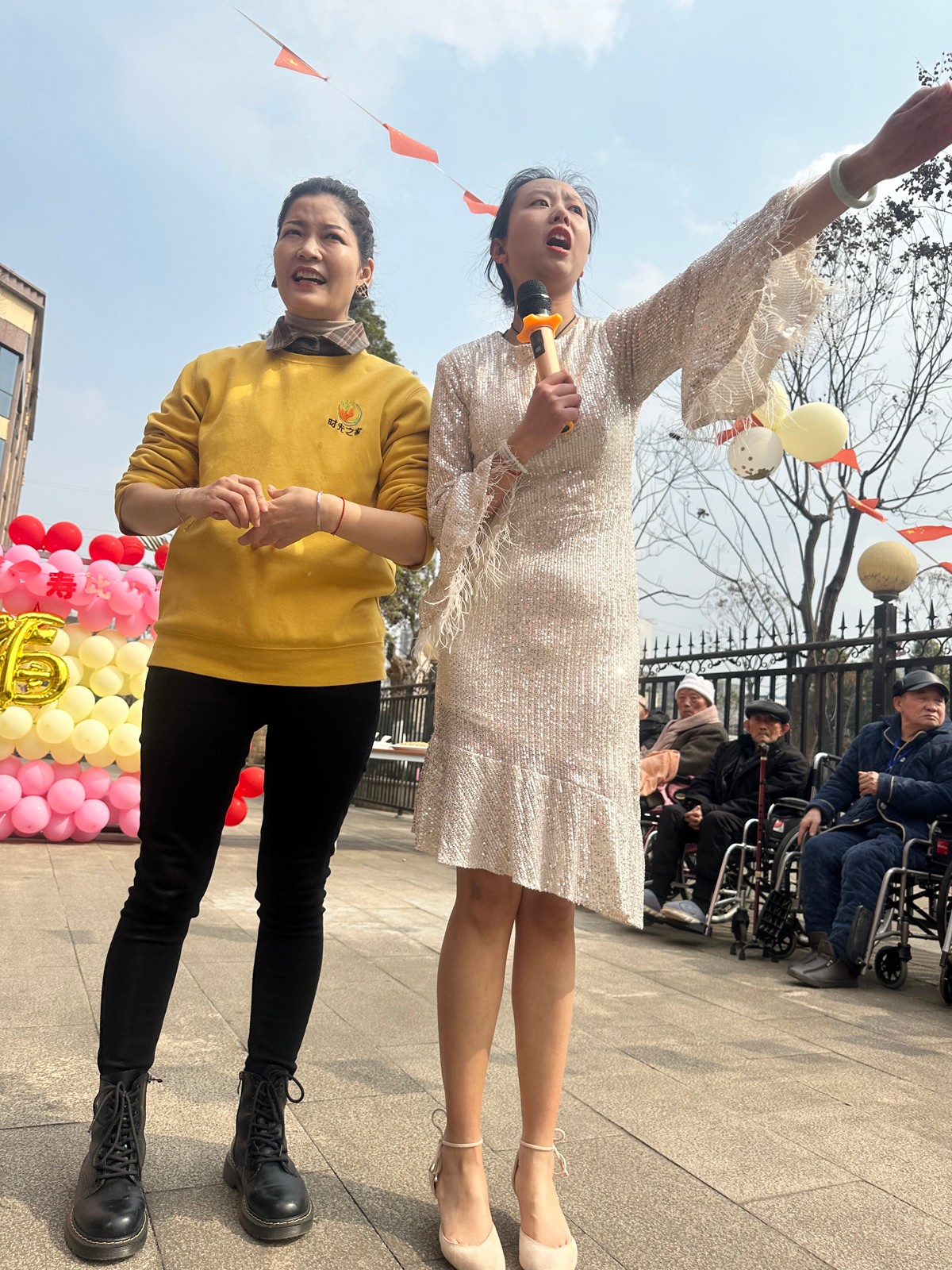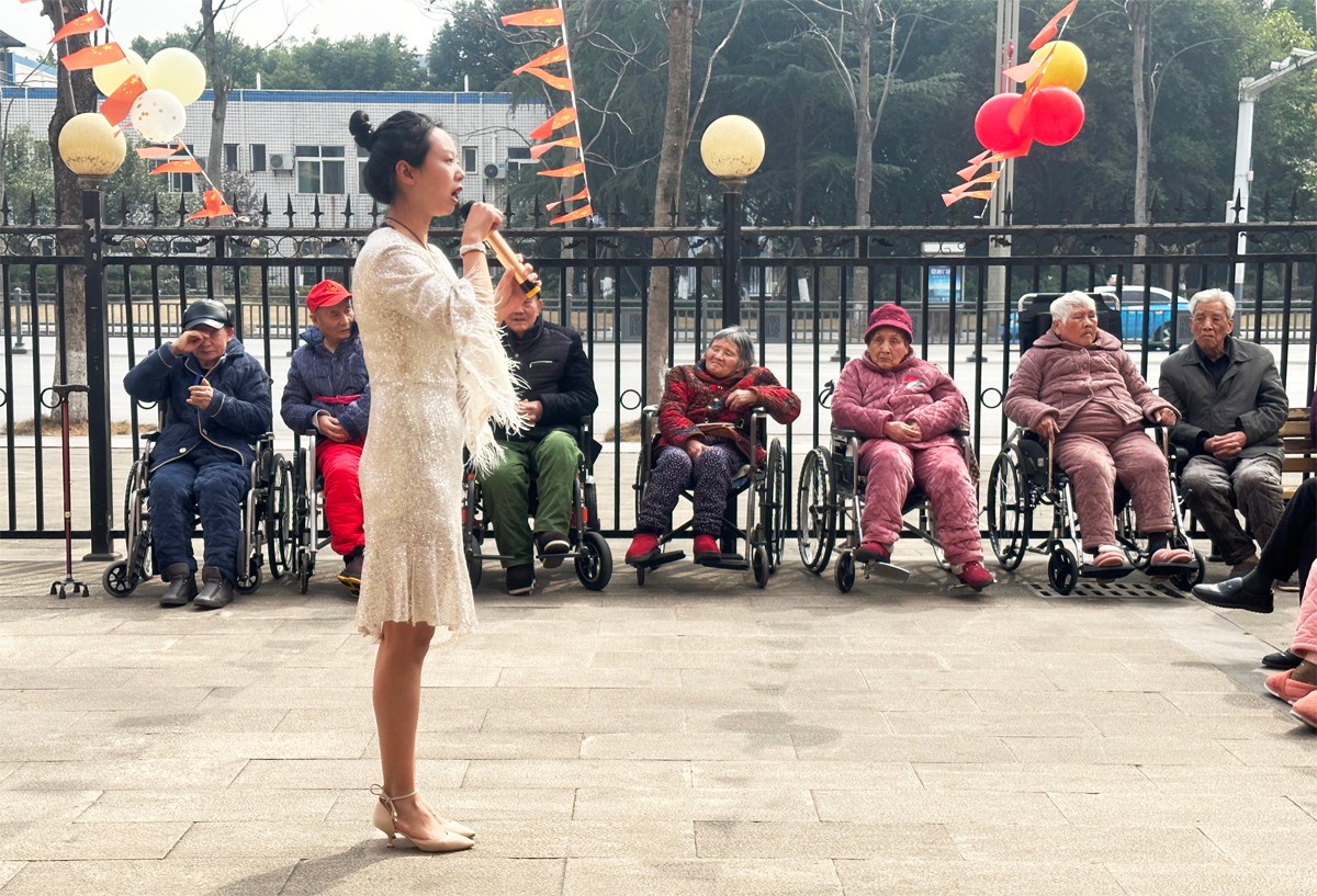 生日会上,为了增添气氛,请来了嘉宾表演节目为长者们庆祝生日,爷爷奶奶们都不由自主地跟着节拍轻轻地拍起了手掌。和长者的互动舞蹈更是带来了满堂的欢声笑语。