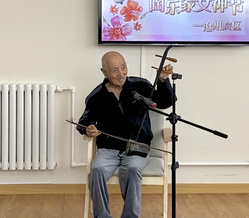 紧接着609室的王爷爷也为大家带来了二胡独奏《红灯记选节》,这经典的样板戏瞬间将大家带回那个奋斗的峥嵘岁月,刻在DNA里的旋律引起全场共鸣;