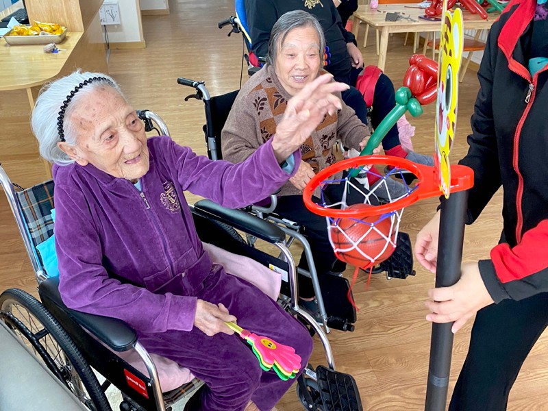 最后在场的所有奶奶进行了投篮比赛,赛场上处处显示着奶奶们的活力,整个活动厅充满了欢声笑语。