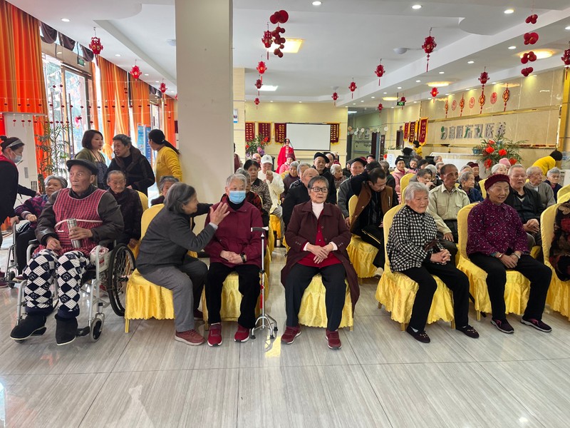 三月份的生日会如期而至,本月有16位长者一起进行集体生日。寿星们一早就换好了整洁的衣服,来到了活动现场。会场上已经布置好零食饮料,院内也进行了喜庆的布置。
