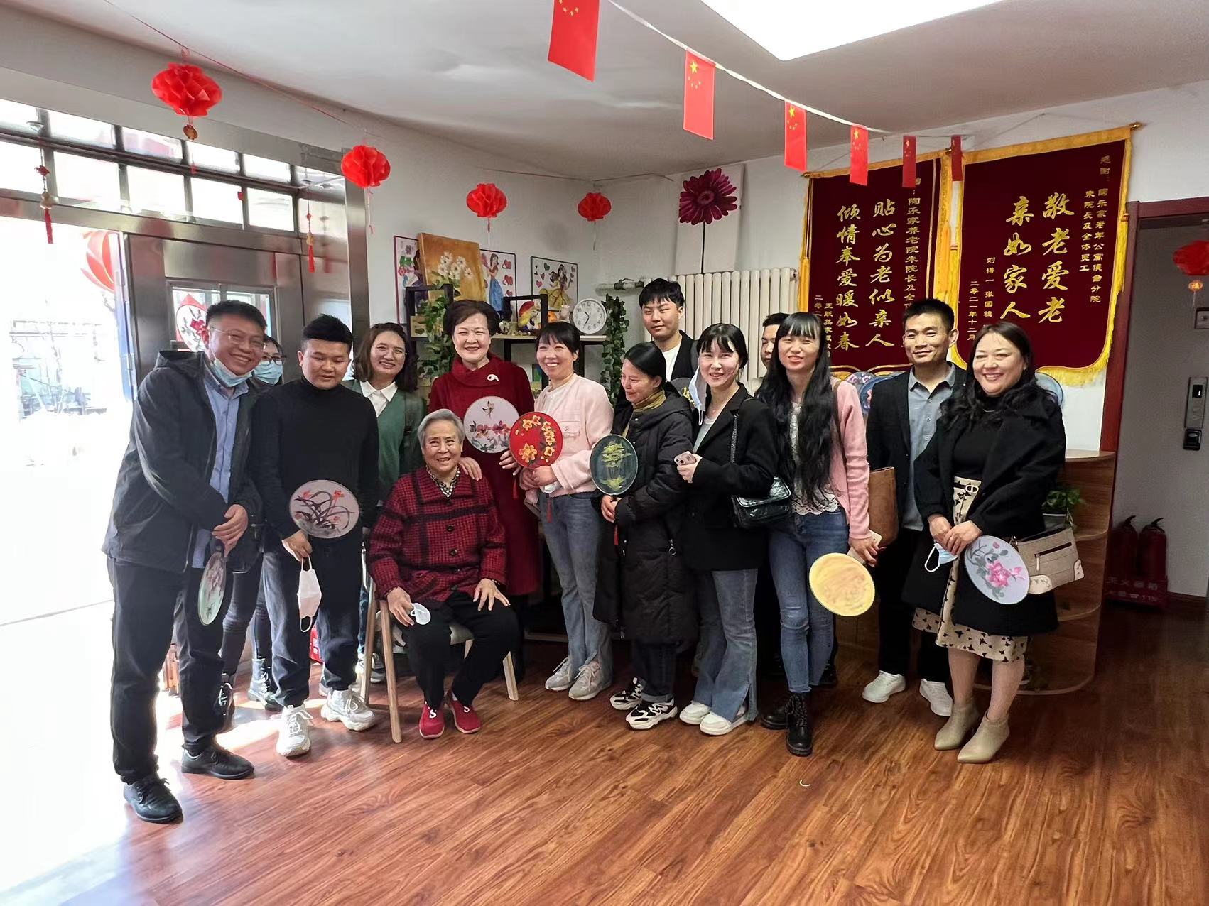 第一站首先来到了天津陶乐家西青分院,朱院长进行了热情的介绍。院内的长者们看到家里来了客人,兴致勃勃的围坐在一起畅聊,兴起之时,院里的长者还唱起来了一段评剧《刘巧儿》的选段,引得初次听到北方戏种的西南朋友们阵阵喝彩。临走之际,院内的明星长者——靖奶奶还为每位到访者送上了自己亲手绘制的团扇,以表达对养老从业人员的敬意。
