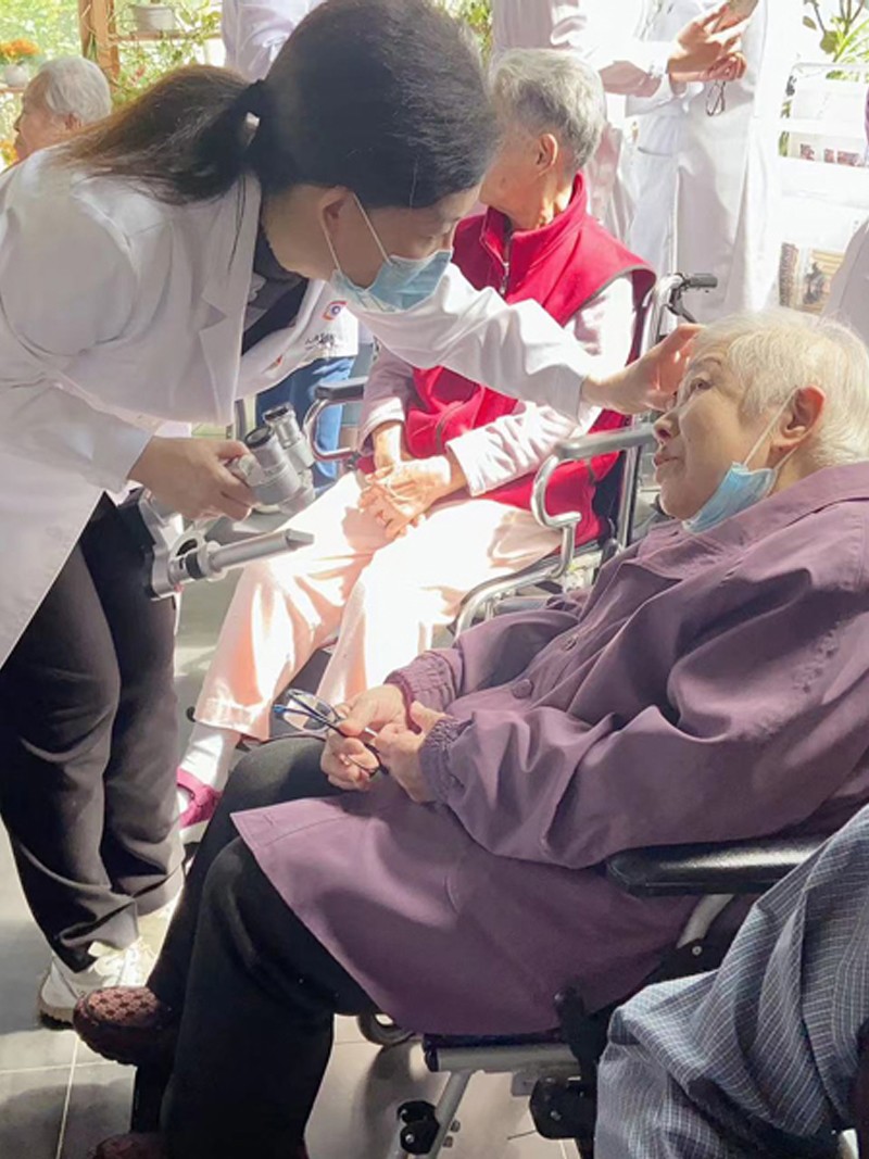 义诊的时候,专家及医护人员详细了解每位长者的生活、身体情况,为每位长者进行多项身体检查,包括查视力、验光、测血压、眼部检查等,并对工作人员和长者们提出的问题一一进行耐心而详细地解答,也对每位长者的检查结果提出了反馈和日常生活护理建议,并特意叮嘱每位长者在以后的生活中,对自己的饮食情况、用眼情况及日常活动要加以重视,认识到早诊断早治疗的必要性,随时掌握自己身体情况,保持良好的心态。