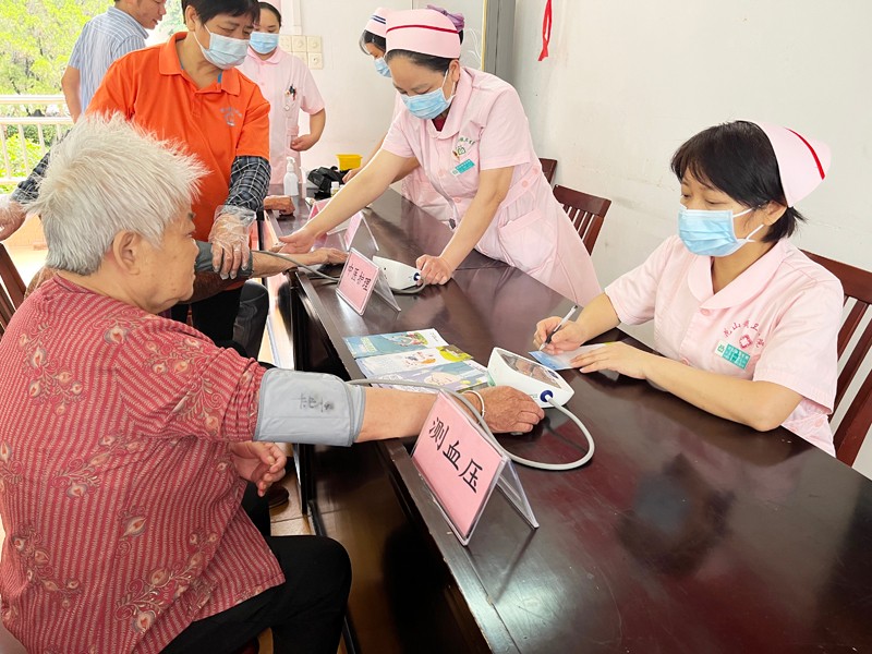 同时,进行了免费测量血压、血糖等身体检查,并针对日常生活中的饮食习惯和心理疏导等方面进行健康指导。最后还为长者们带来了小礼物,送到爷爷奶奶们手中。