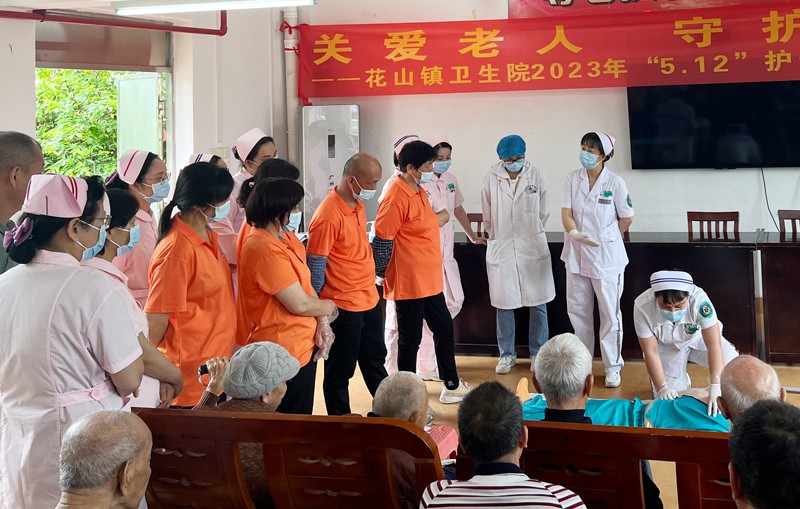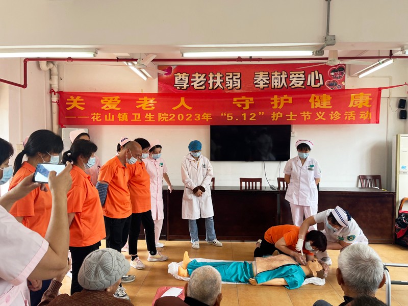 日前,随着第110个国际护士节的到来,为弘扬南丁格尔精神和敬老爱老的传统美德,花山镇卫生院的医护人员们来到花山镇敬老院进行了义诊和急救培训。作为新加入陶乐养老大家庭的广州市花都区花山镇敬老院,对医护人员的到来表示了热烈的欢迎和感谢。