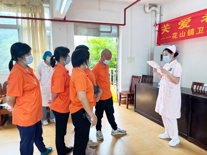 义诊之后,花山镇卫生院的医护人员对花山镇敬老院的工作人员们做了日常护理和急救的培训。用生动形象的讲解,做了抢救方法的预案和演练,巩固了工作人员在特殊情况下的急救水平,切实保障了长者在院安全问题。