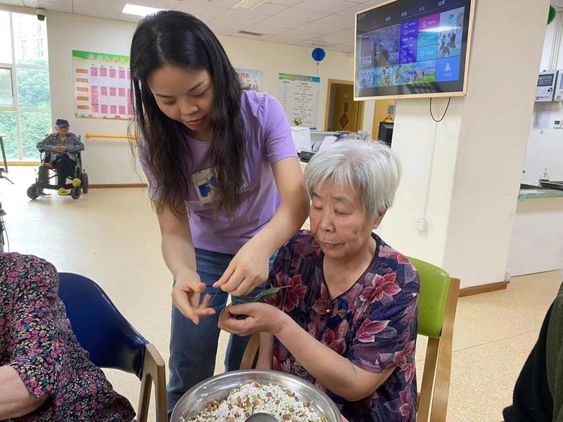 攀枝花德铭菩提养护院更是迎来了当地白玉爱心协会志愿者的到来,通过边交流边包粽子,不但活跃了长者身心、和社会人士联络感情,还为入住长者营造一个温馨和谐、健康快乐的生活环境,增进入住长者的归属感和幸福感。