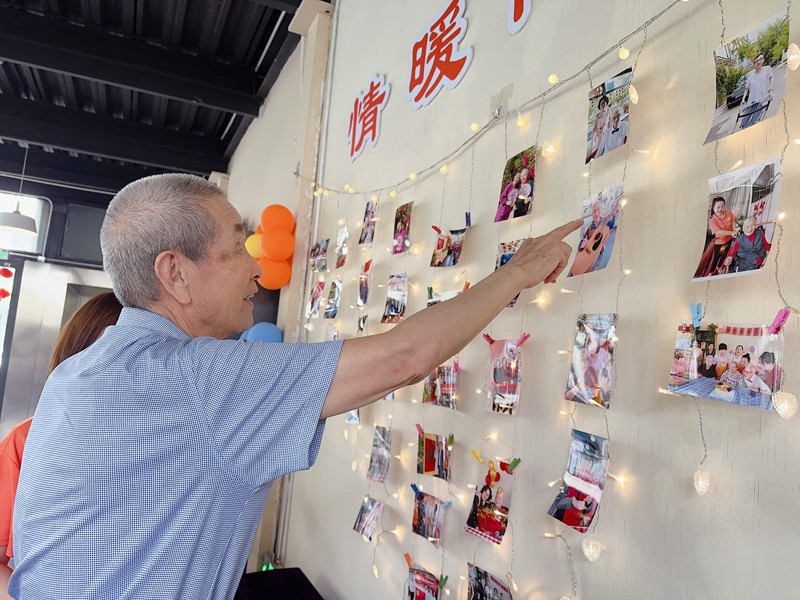 为了留住美好的回忆,院内还布置了两面照片墙,不仅将历年的周年活动都展现于此,还将爷爷奶奶在院里生活的张张笑脸都定格下来,形成了一面闪光的记忆。长者和家属们一起回顾朝夕相处的点滴时光,看着一张张照片上熟悉的笑容,除了感慨时光飞逝,更多的是对晚年幸福生活的感恩与期盼。刘奶奶指着照片中的自己,笑着说:“陶乐家就是一个大家庭,在这里,我们不仅收获了幸福和健康,也收获了亲人与朋友!”