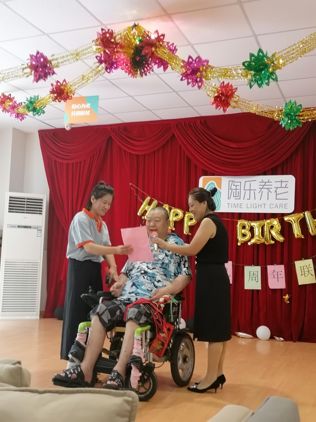2014年的7月22日,是第一位长者入住陶乐家的日子,从那一刻起,陶乐养老就以“贴心为老,分担解忧”为宗旨,立志于帮助更多家庭获得高品质、有尊严的养老服务。所以我们将这一天作为陶乐养老的生日,每到这个日子,我们就又多了一个与家里人温馨欢聚的时刻。
