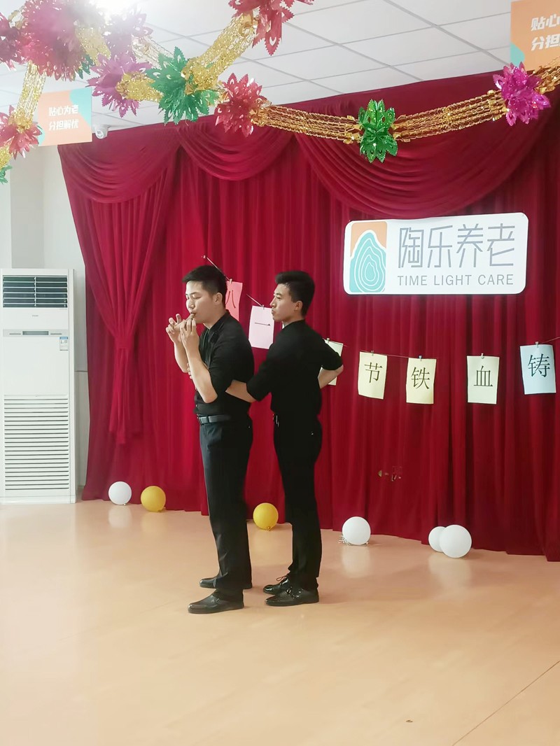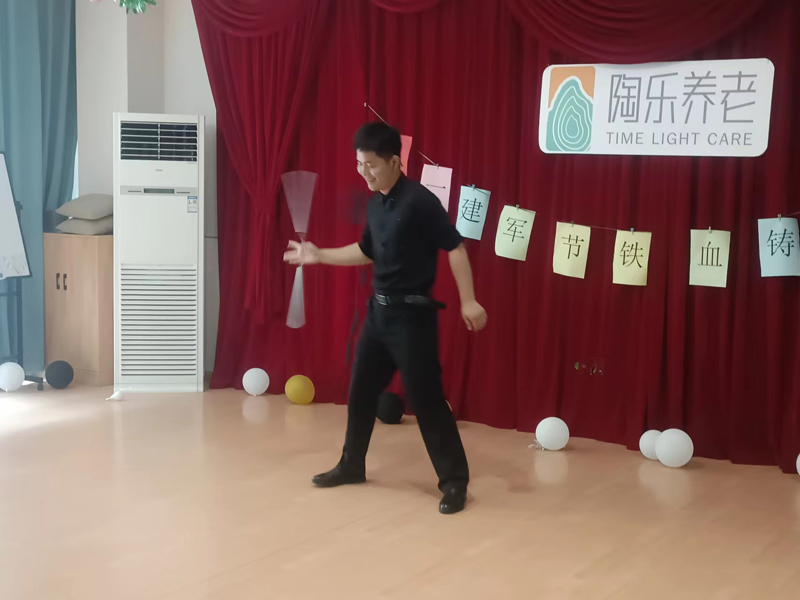 陶乐养老沧州分院本次的建军节活动依旧精彩纷呈。活动现场不仅是长者们一显身手的地方,更是迎来了鑫麓文化传媒有限公司的退伍小战士,多才多艺的他们也为院里长者带来了精彩的表演。