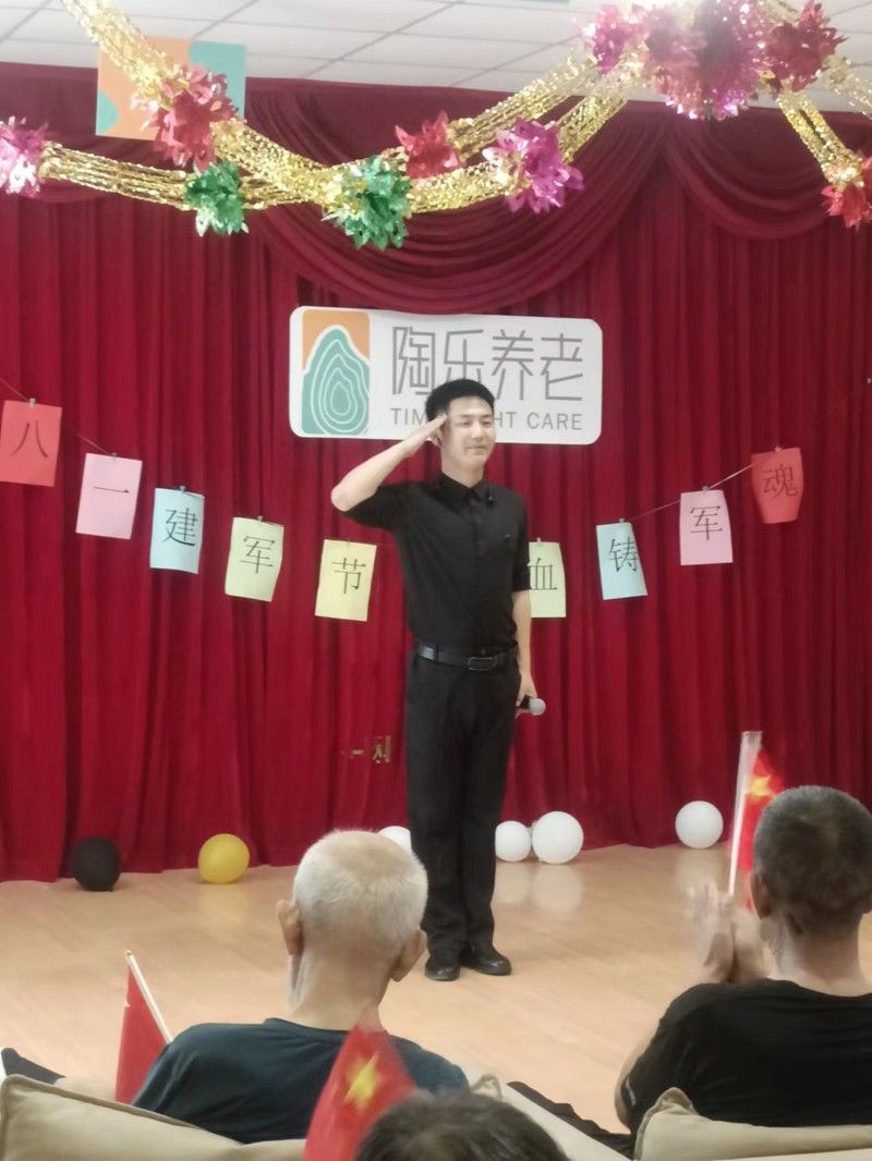 转眼历史已翻过九十六载,值此八一建军节到来之际,为纪念老兵、致敬军人,让养老院里的长者共同回忆军旅往事,感受铁血情怀,陶乐养老各地组织开展了丰富多彩的建军节活动。