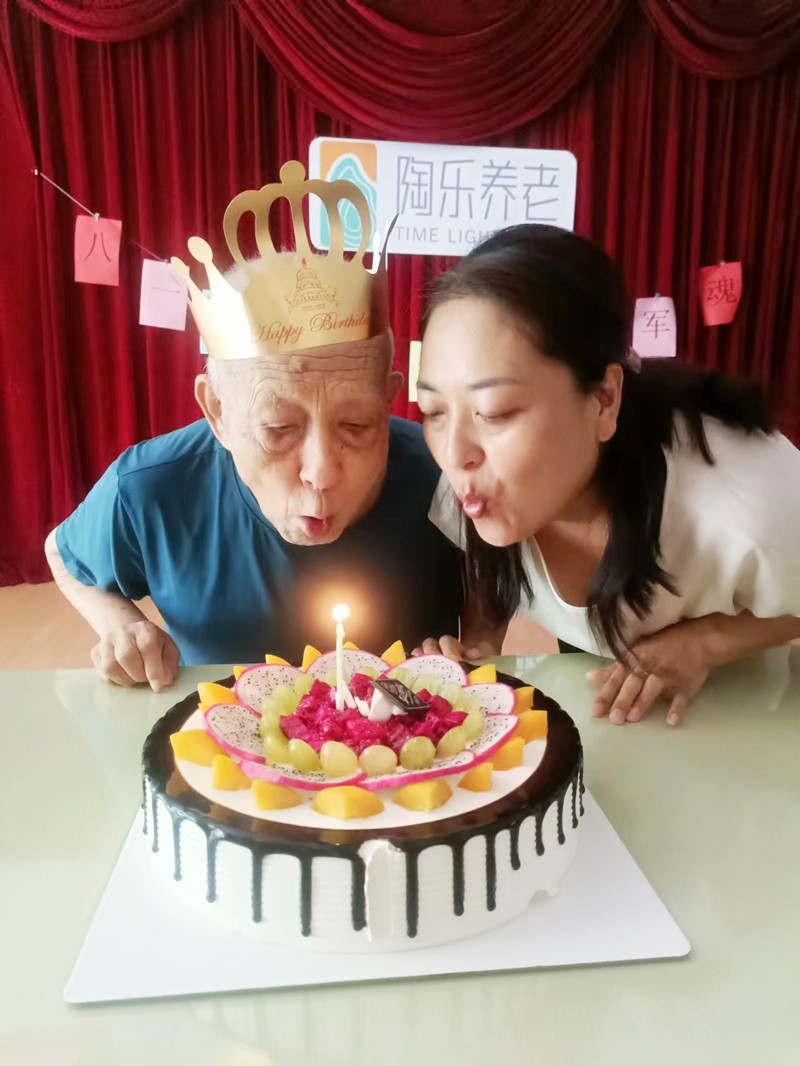 好事成双,随后活动中还为院内长者刘爷爷举办了88岁寿辰的生日会,刘爷爷家属端上了院里精心准备的蛋糕,大家一起享受这个欢乐的时刻。