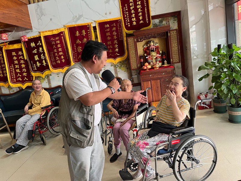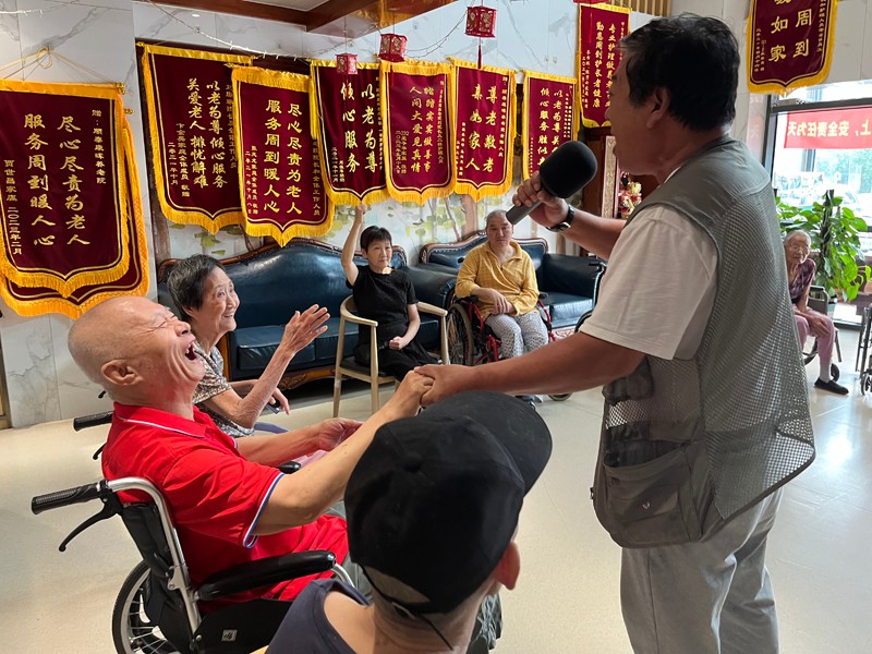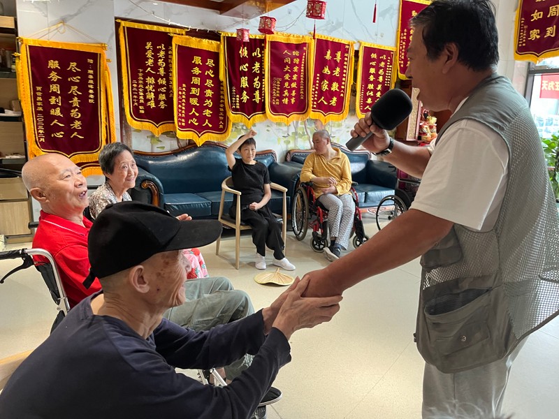 玩到兴起,工作人员曹师傅还一展歌喉,即兴献歌,受到了长者们的阵阵欢呼。曹师傅也热情地与台下长者互动,爷爷奶奶们开心得像听了一场演唱会,还强烈要求返场。