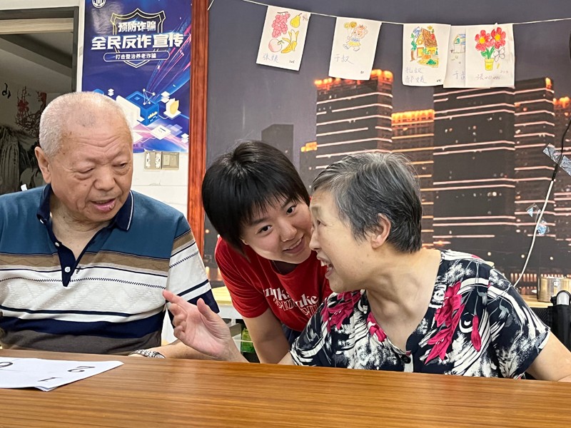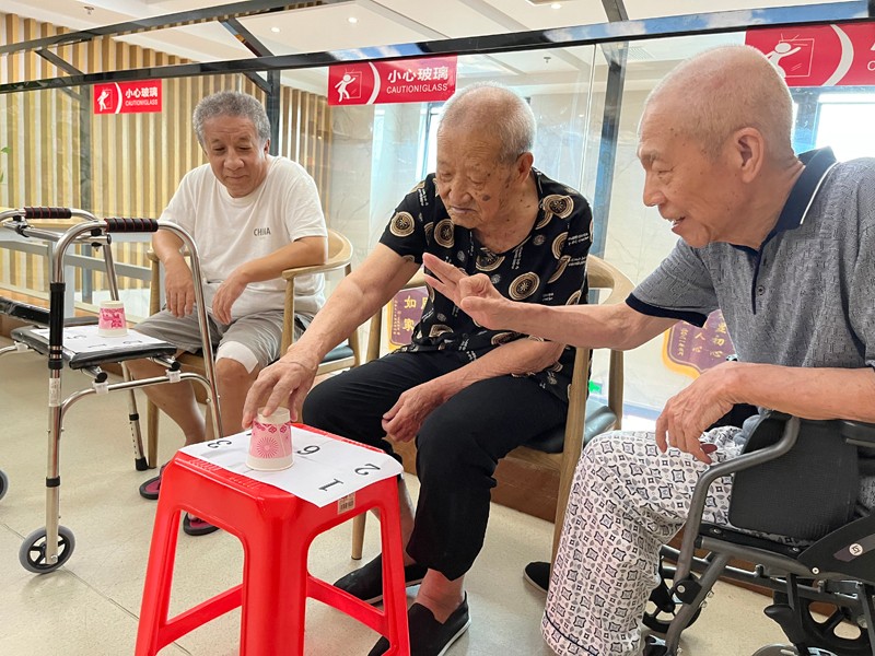 几位关系要好的爷爷们,平时最爱在一起“侃大山”,还会拉着工作人员一遍一遍的讲着年轻时候扛枪打仗的经历,工作人员笑眯眯地一次又一次为爷爷们竖起大拇指,夸赞每一位爷爷都是最棒的。在游戏的时候,老哥儿几个也是互相出谋划策,六十多岁的爷爷为九十多岁的爷爷“支招”,还说要给这个游戏起个名字叫做“返老还童”,引得大家哈哈大笑。