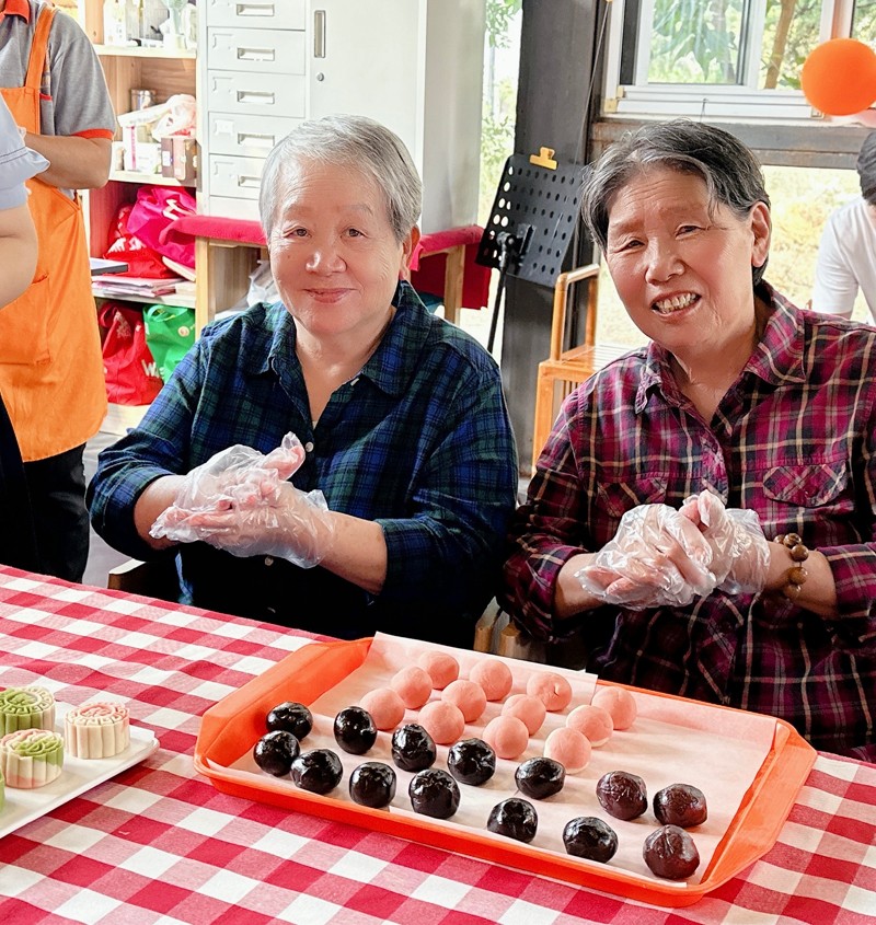 到了动手DIY月饼的环节,工作人员手把手陪伴长者们一起制作改良月饼,和传统的制作方式不同,爷爷奶奶们感到又熟悉又新奇,尝了一口,甜在心里,连连说“怪不得你们小年轻的都喜欢这个,像点心一样真好吃!”