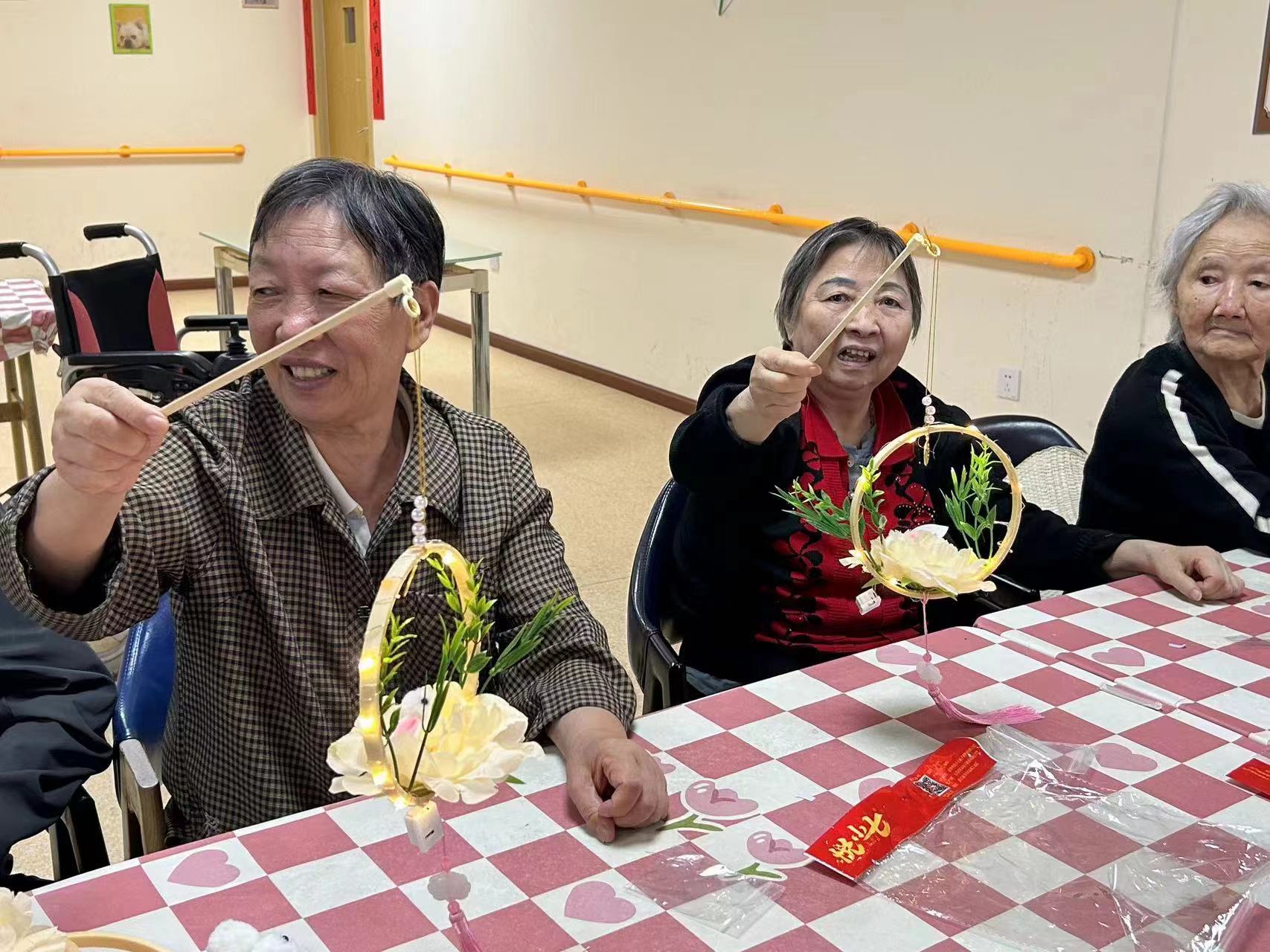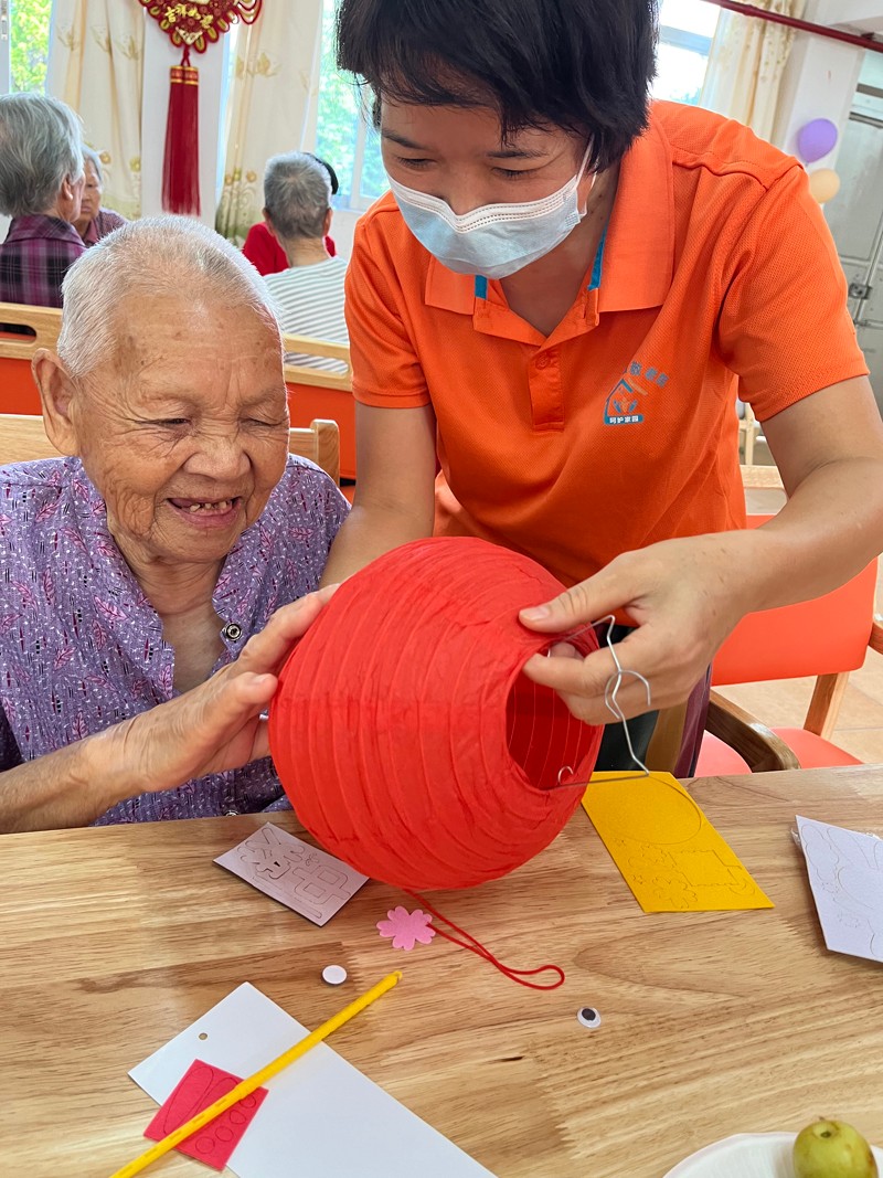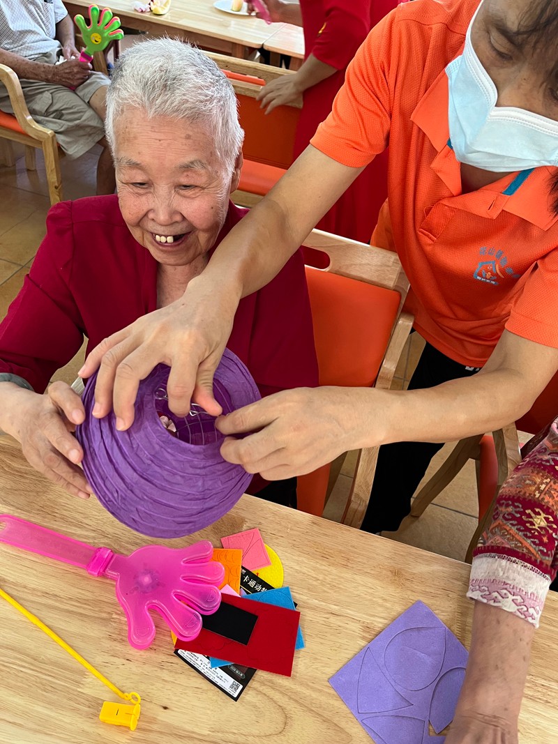 长者们在工作人员的帮助下,动手制作了中秋彩灯,将节日气氛瞬间拉满,爷爷奶奶们看着一盏盏彩灯,笑得合不拢嘴。