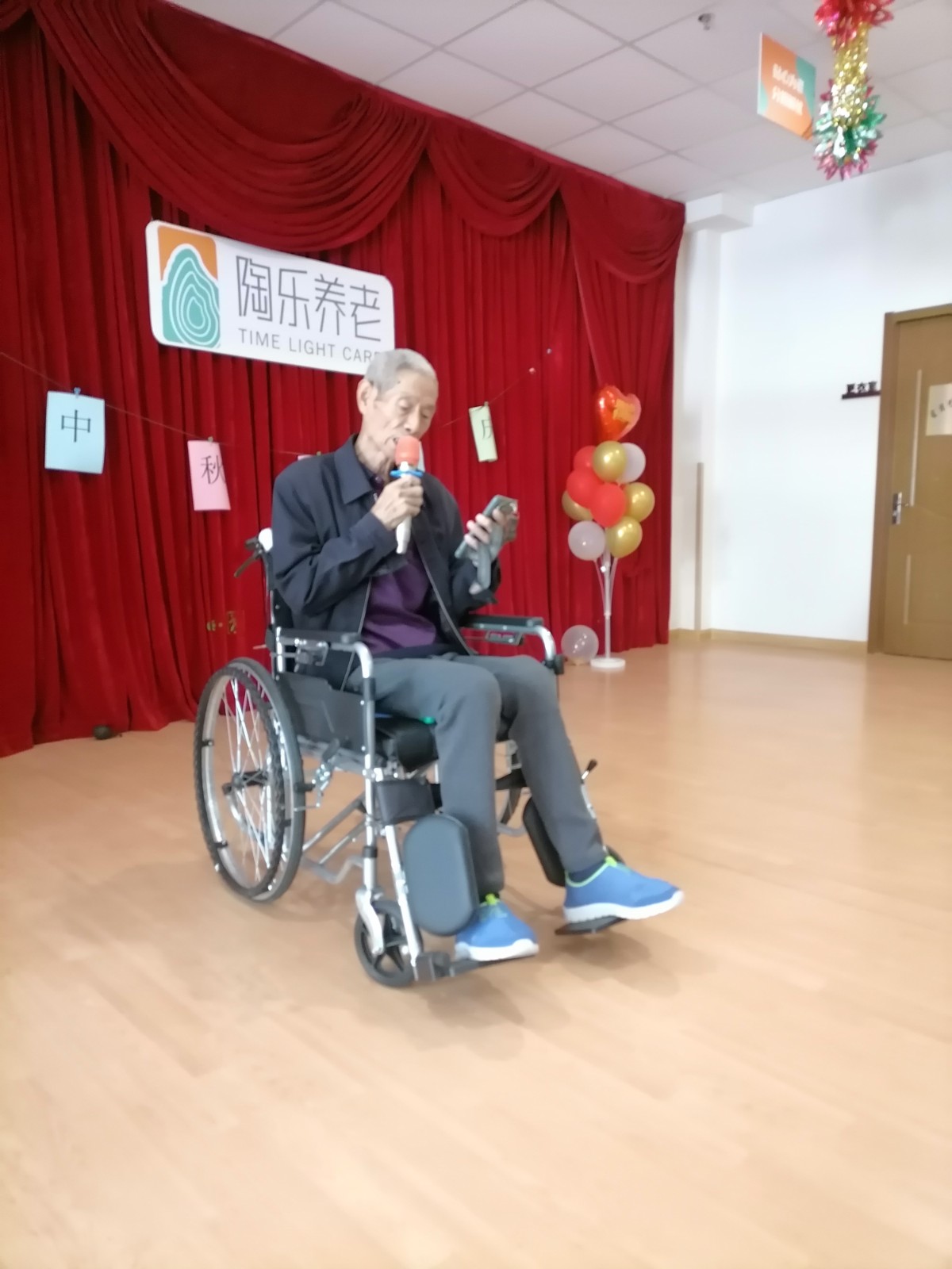工作人员和爷爷奶奶们聚在一起载歌载舞,拉开了节日序幕。长者们纷纷一展歌喉,一首接一首的唱起来经典老歌,现场气氛欢快愉、掌声经久不衰。