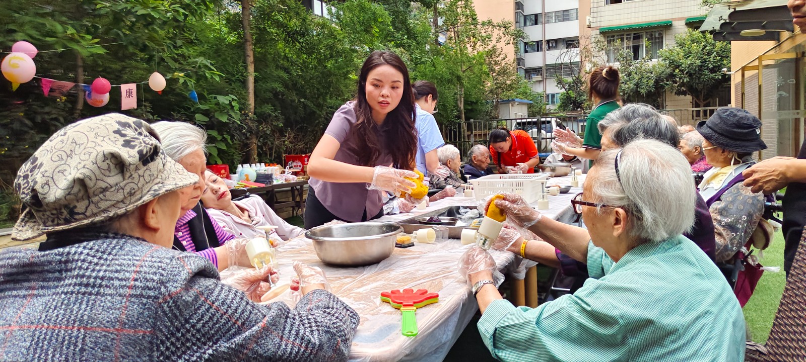 新加入陶乐养老大家庭的重庆大溪沟街道四恩乐龄养老服务中心早早就已经把节日气氛烘托了起来,在院内为长者们举行了庆双节的主题活动。