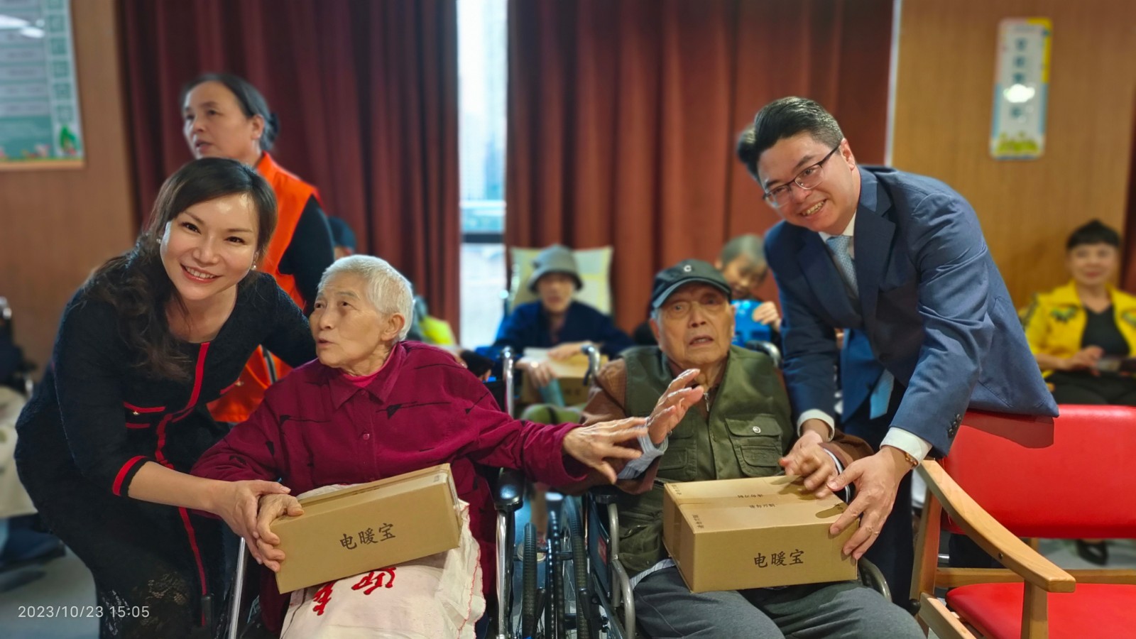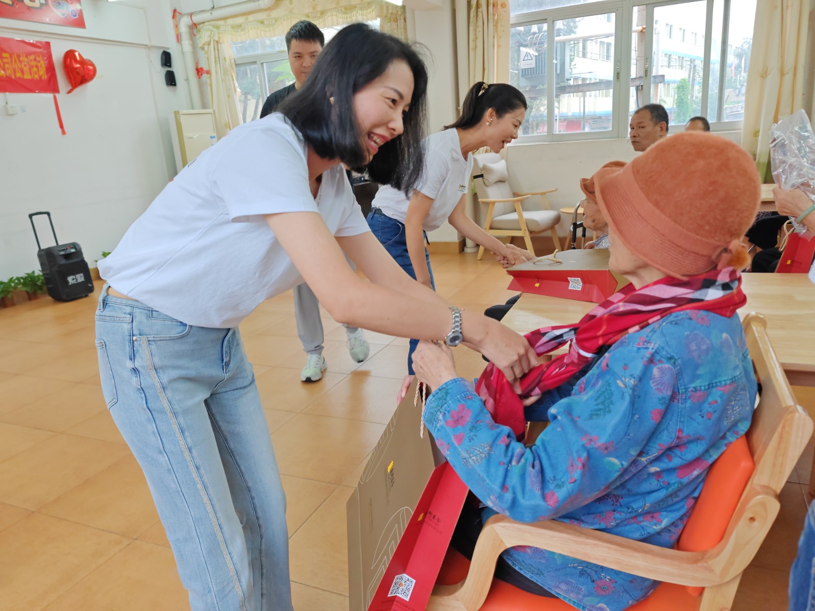 广州南粤投资顾问有限公司也带着礼物和爱心来到了花山镇敬老院内,与长者们嘘寒问暖,亲切交谈,详细询问长者们的身体健康状况、日常生活情况等,并送上节日慰问品。现场还为长者们理发、一起游戏,丰富敬老院长者的晚年生活,营造浓厚的节日氛围。