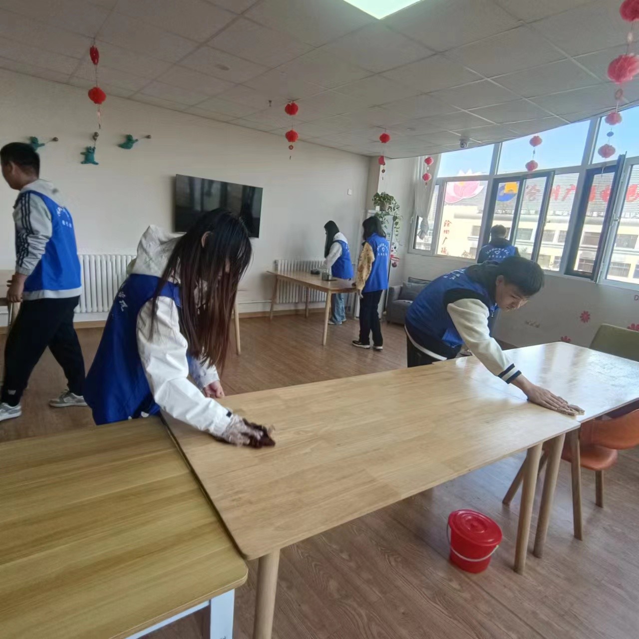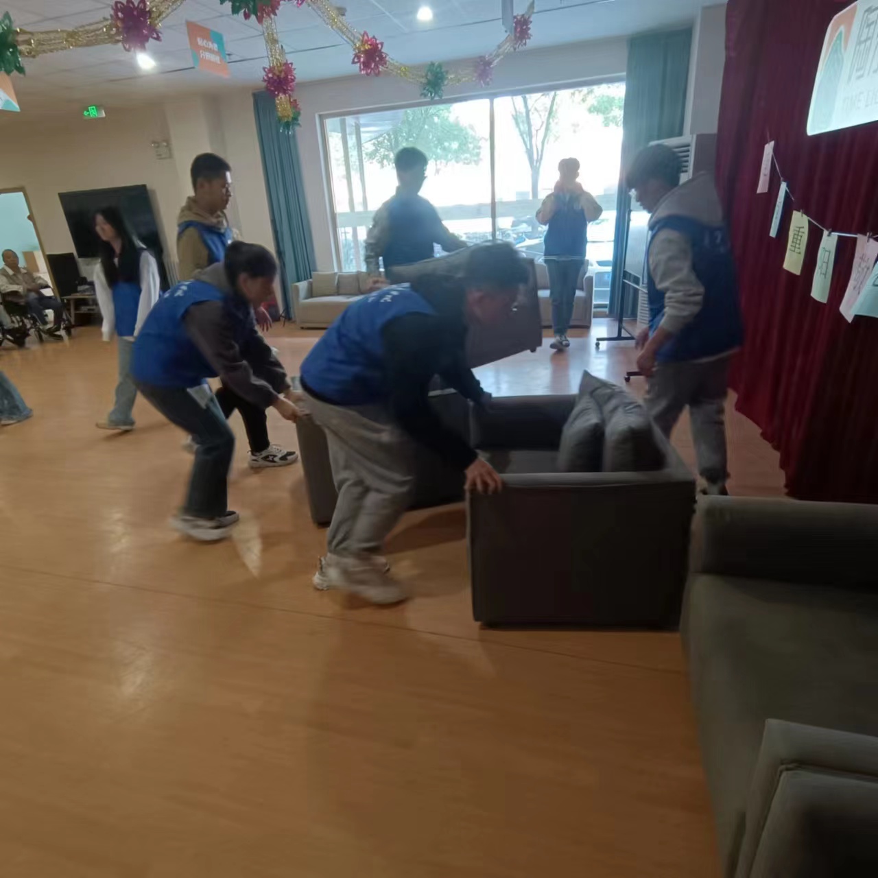 河北水利电力学院大学生志愿者来到院里,为爷爷奶奶们送来了节日礼品。一张张朝气蓬勃的笑脸,和长者们亲昵的互动,还为院内打扫卫生、布置会场,为长者们营造良好的生活环境。