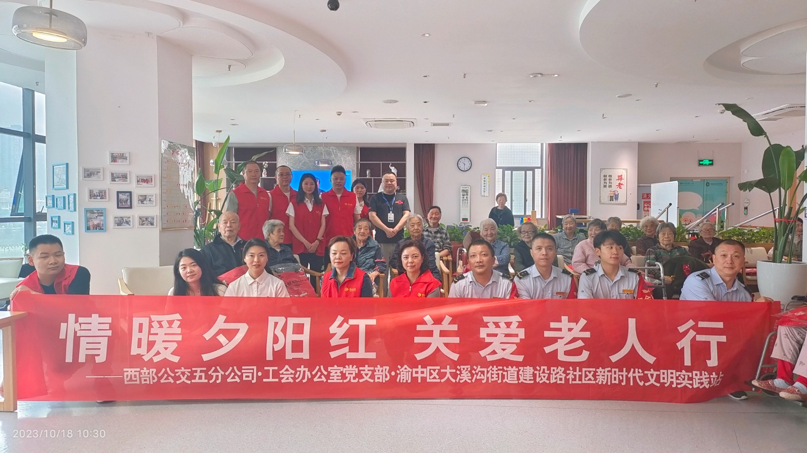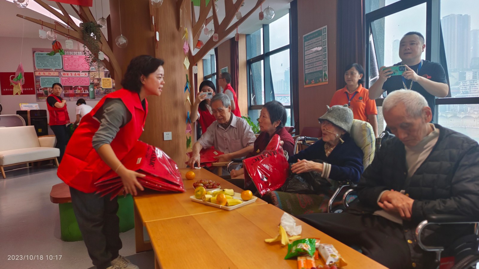 九九重阳节,爱满夕阳红。重庆四恩乐龄护理院陆续迎来了重庆市税务局第三税务分局、民建渝中区委六支部、渝中区水木幼儿园、渝中区大溪沟街道建设路社区合唱团、渝中区大溪沟街道建设路社区居委、西部公交五分公司党支部等多家机关企事业单位、学校的志愿者前来慰问。