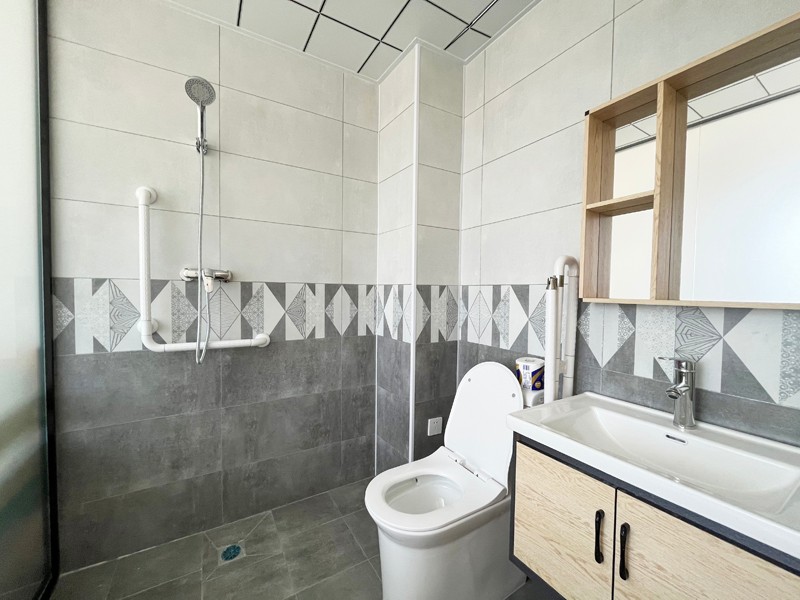 房间内、卫生间内,所有的设施都进行了适老化改造,并配备紧急呼叫器,让长者住得安心。