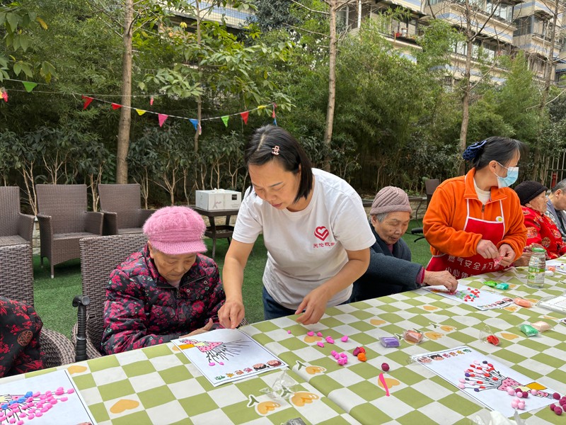 微风和煦、春意盎然,在成都安康乐孝康养中心的户外庭院里,张院长带领工作人员一起与院里的爷爷奶奶们开启了动手动脑的手工活动。在工作人员的协助下,一朵朵鲜花跃然纸上,代表着最美好的祝福,感谢女性为家庭和社会所做的付出。