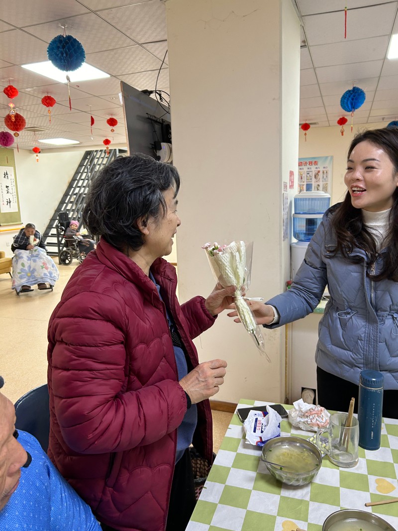 在这个温暖的节日里,青孝养老的工作人员用美丽的鲜花向院里的奶奶们表达祝福,也向所有女性献上敬意。一束芬芳的鲜花,一句温馨的话语,是对她们深深的祝愿,更传达了尊敬、爱护与关怀。当贴心的祝福、芬芳的鲜花和长者们的笑脸融汇在一起,大家收获的不仅仅是鲜花,更多的是一份感动。