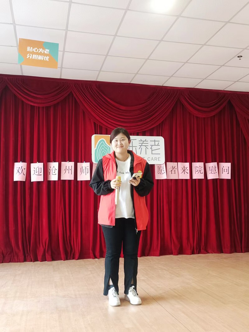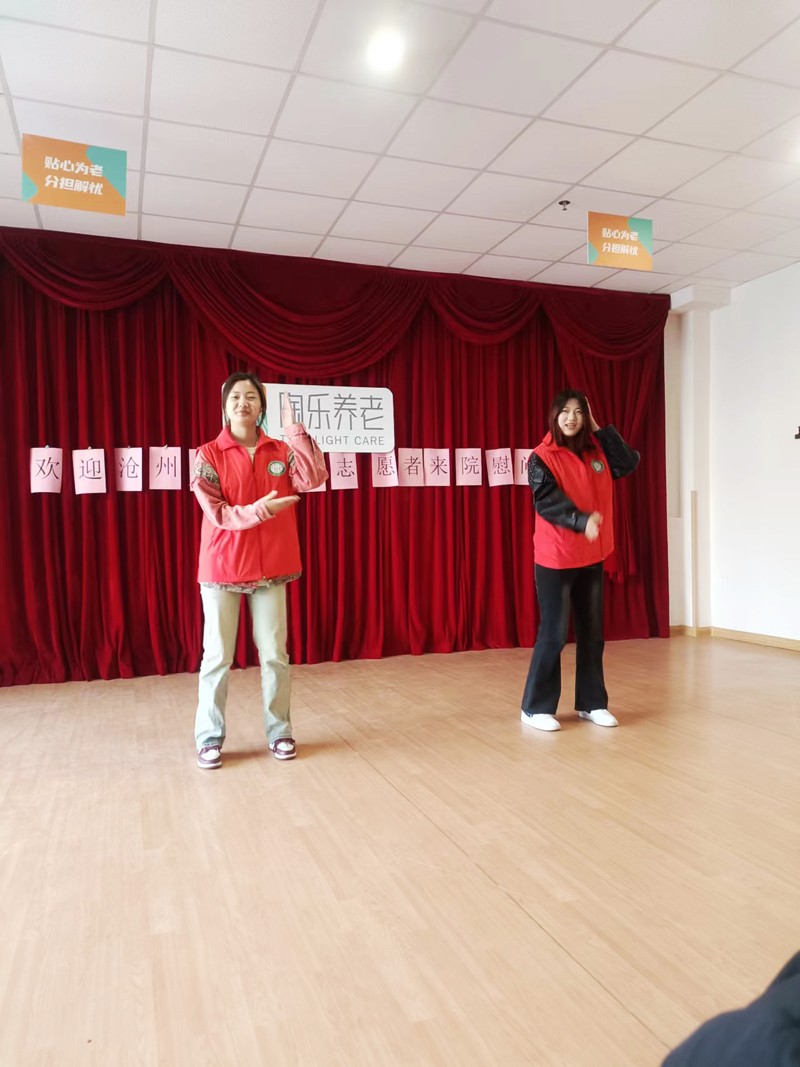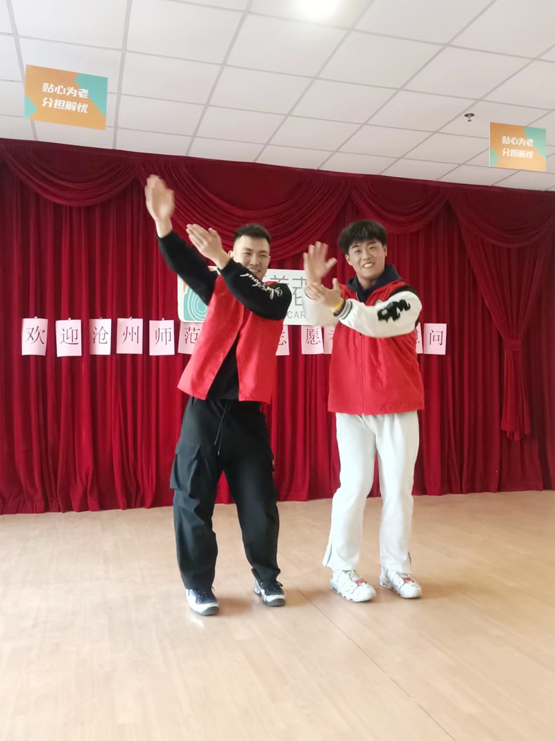 沧州师范学院的大学生志愿者们也来到了沧州分院。他们为长者们带来了丰富多彩的文艺演出,包括歌曲、舞蹈、小品等多种形式的节目。同时,志愿者们还帮助长者们打扫卫生,整理房间,为他们创造了一个更加舒适的生活环境。