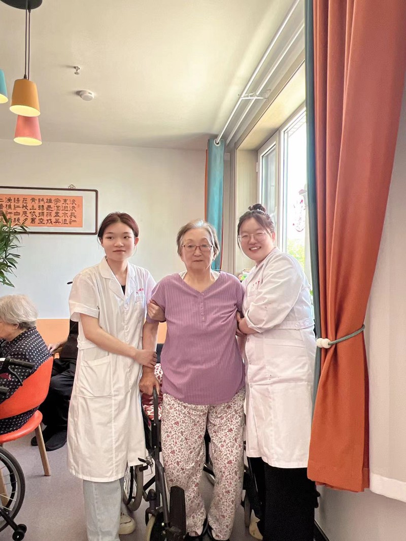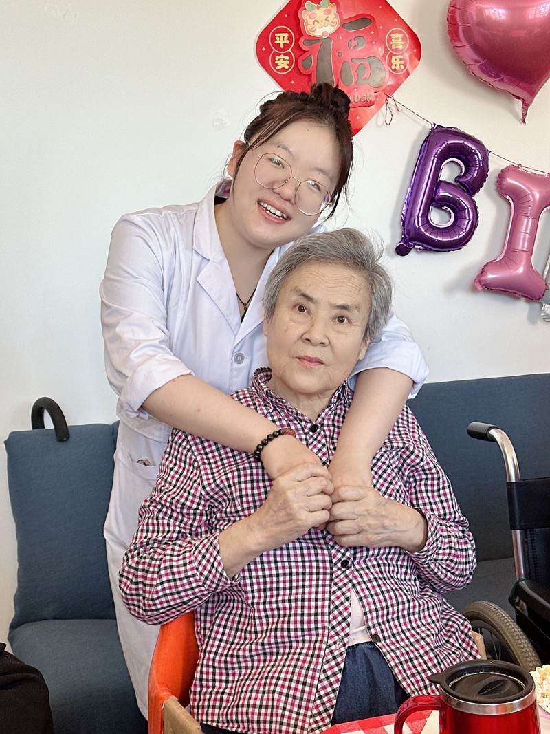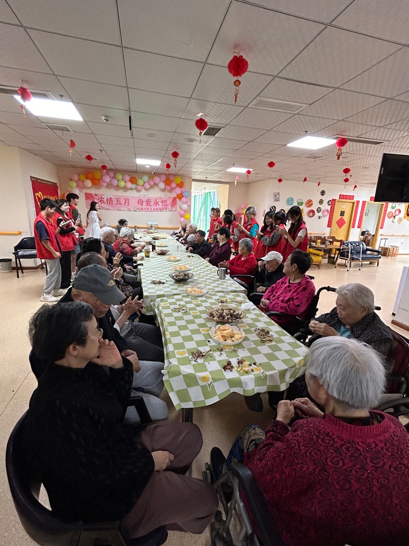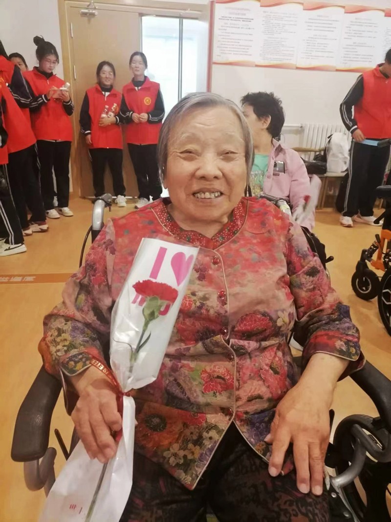 在沧州南湖颐养中心,长者、家属、学生志愿者和院内员工欢聚一堂共同联欢。朗诵、数来宝、跳舞、唱歌、二胡、八段锦等节目轮番上演,现场气氛热烈而欢乐。每位母亲都收到了一朵康乃馨,寓意着健康与幸福。最年长的张奶奶作为母亲代表,为大家切下了美味的蛋糕,她的笑容感染了在场的每一个人。此外,学生志愿者还为老人们实操了《老年手指按摩保健》,为他们讲解养生手指操,并测量血压,用实际行动传递着关爱与温暖。
