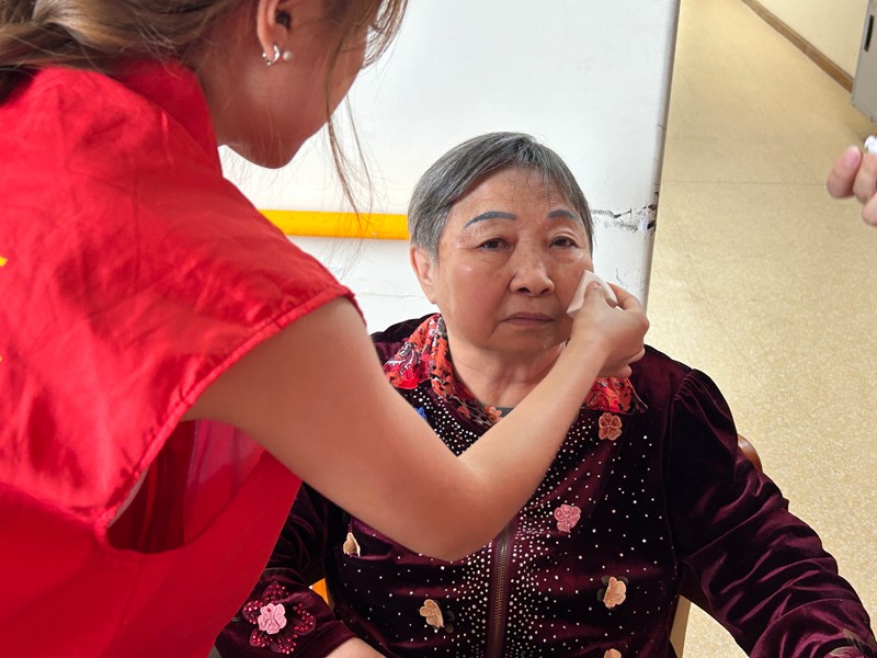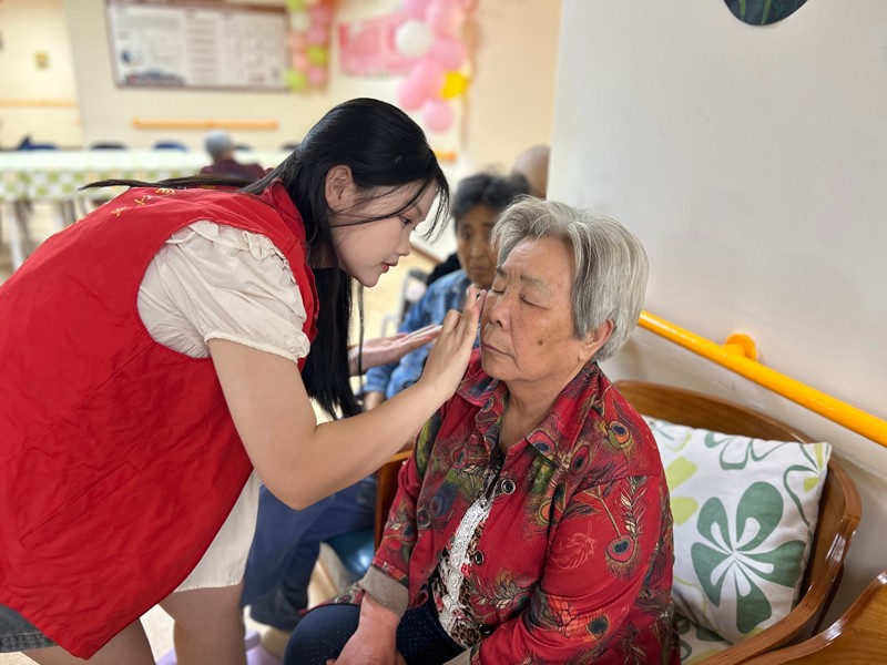 在成都拾智养老,学生志愿者们为长者们带来了特别的惊喜——化妆。很多长者一辈子都没有化过妆,这次在志愿者的巧手下,他们变得更加漂亮和自信。看着镜子中的自己,长者们的脸上都洋溢着幸福的笑容。