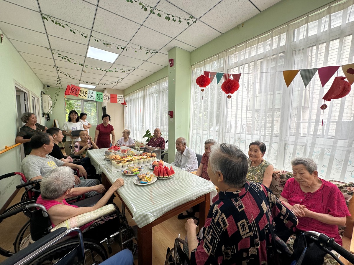 在天津河东分院,家属、员工与长者们欢聚一堂,歌声与笑声交织成最美的旋律。大家围坐一起,唱歌、唠家常,仿佛是一个大家庭的温馨聚会。