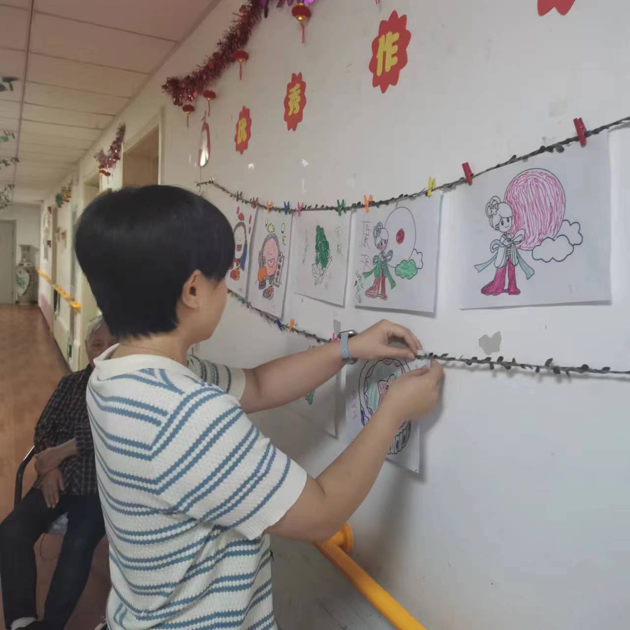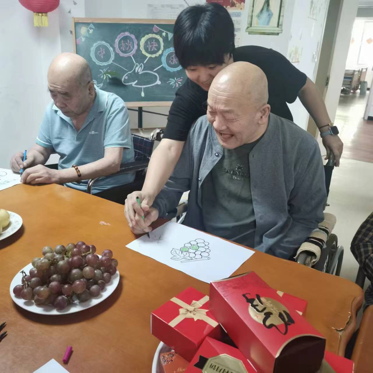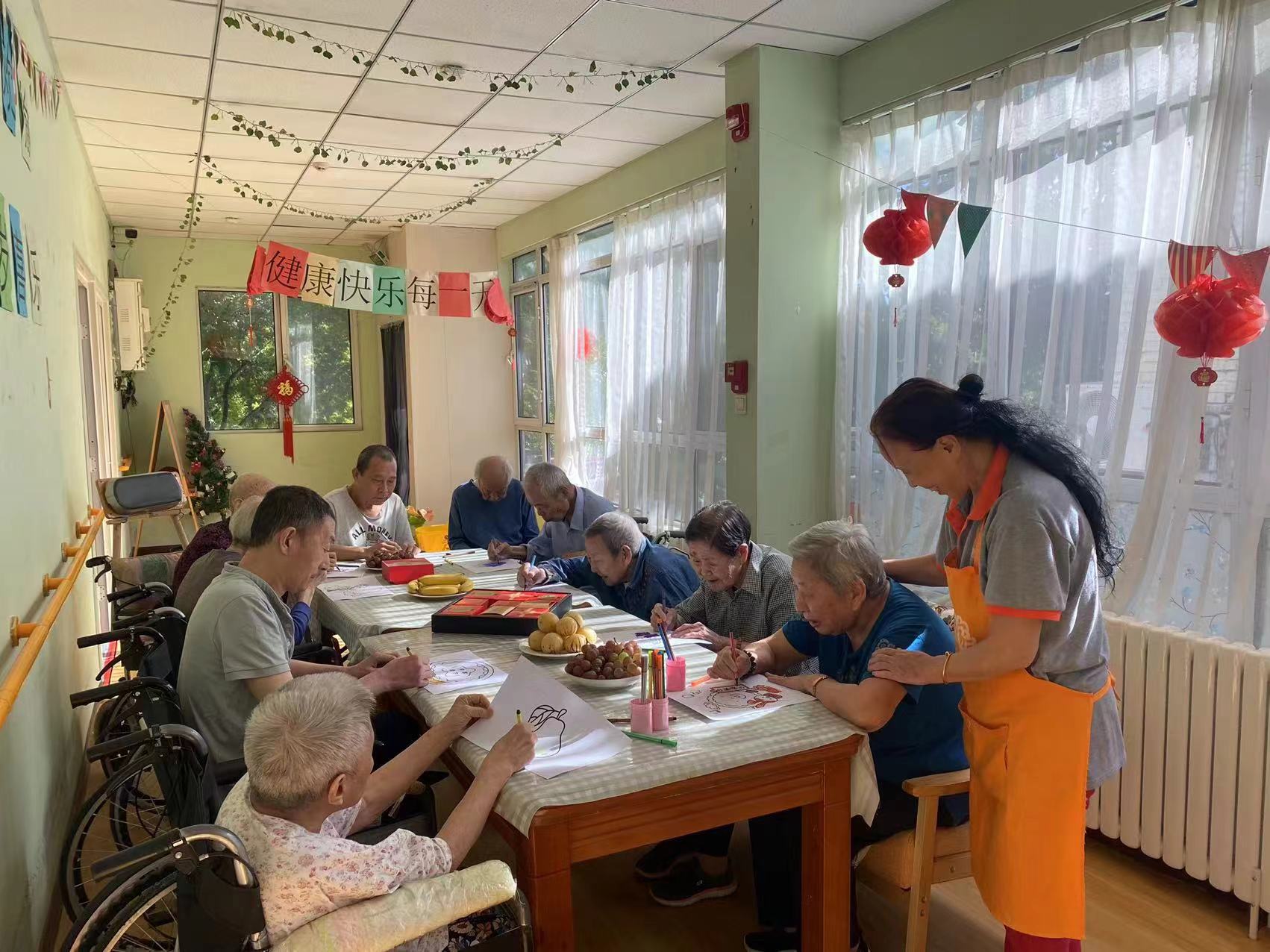 河东分院在孟院长的带领下,举办了一场别开生面的绘画比赛。爷爷奶奶们用画笔抒发情感,一幅幅作品色彩斑斓,充满创意,最终这些作品被精心布置在院区各处,为环境增添了几分艺术气息。而东丽分院则将活动搬到了户外庭院,大家围坐一起,享受着秋日的凉爽与美食的慰藉,欢声笑语中,中秋的温馨与美好被无限放大。