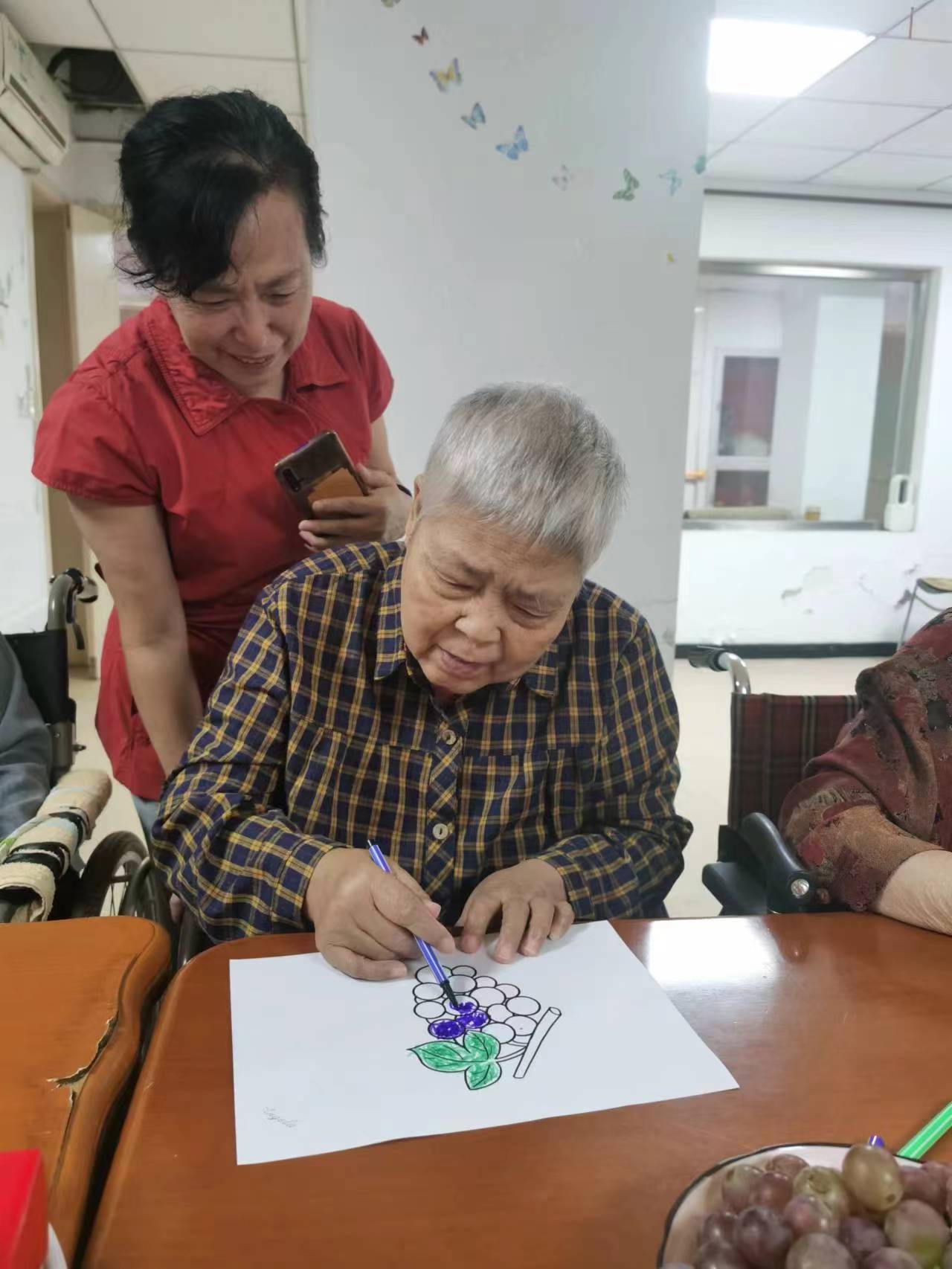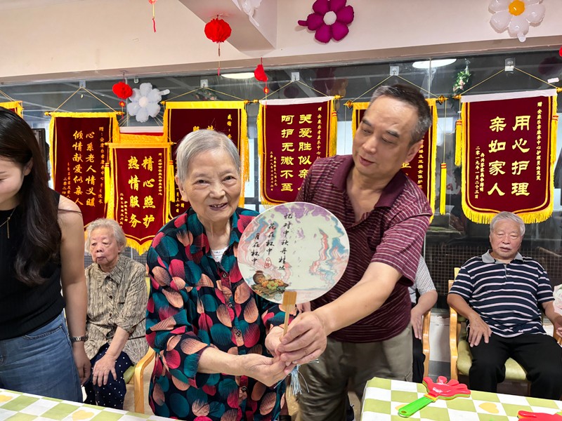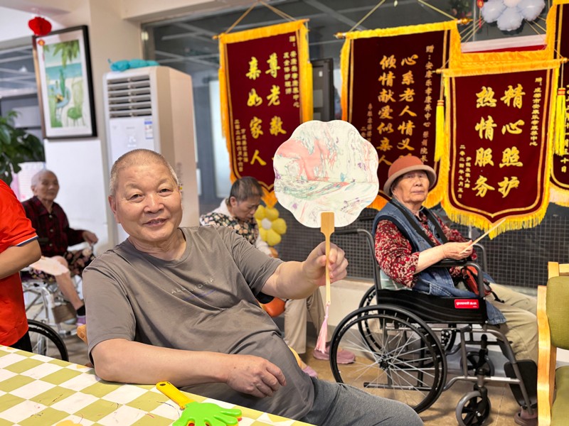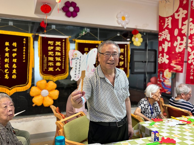 成都安康乐孝康养中心提前布置好了院区,每一处细节都透露着中秋的韵味。张院长与老人们一同动手,制作起非遗项目——漆扇。在色彩的交织与图案的绘制中,不仅传承了传统文化,更增进了彼此间的情感交流。