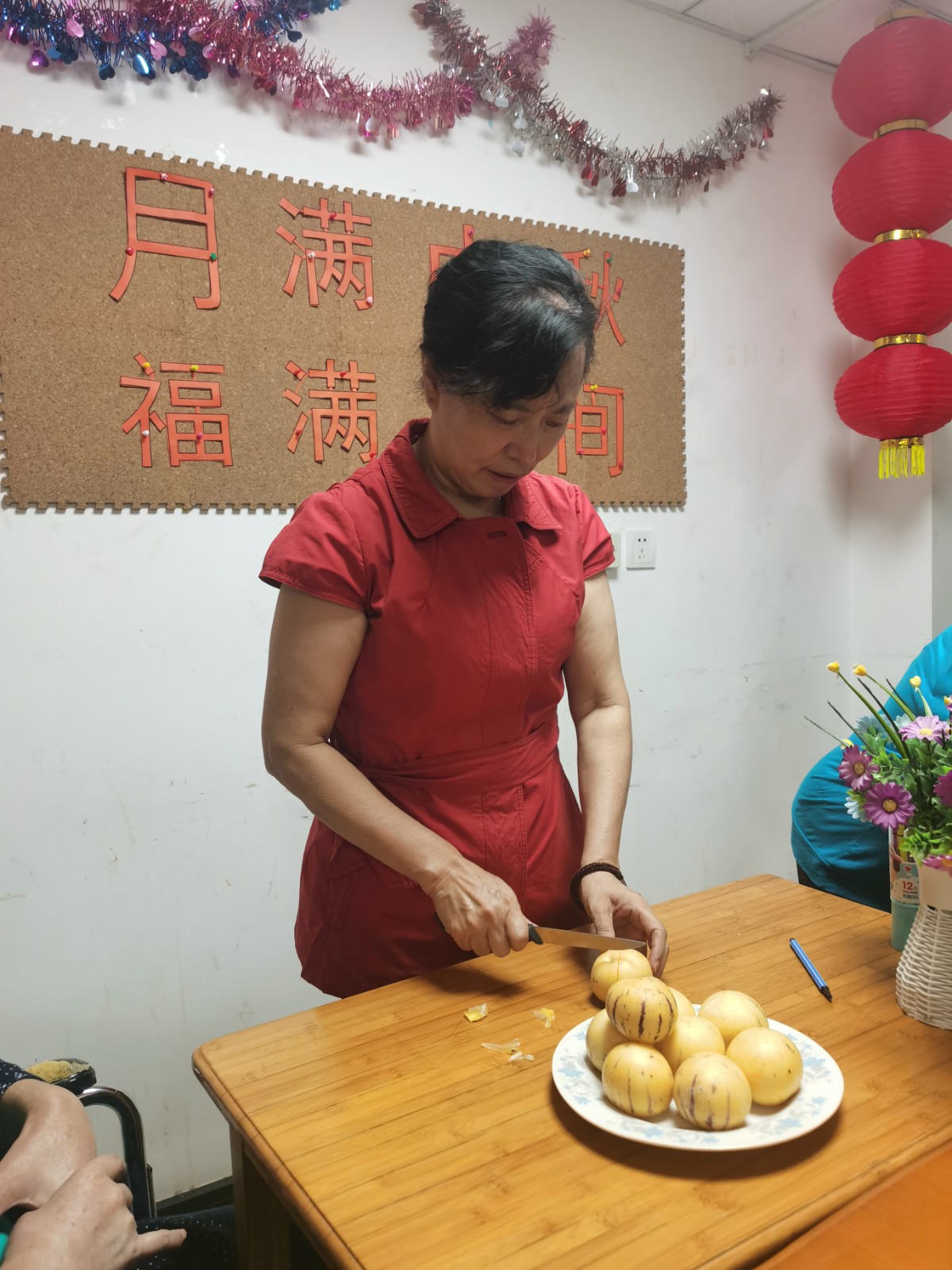 在天津陶乐家南开分院,工作人员与爷爷奶奶们欢聚一堂,共享丰盛的下午茶与晚宴。桌上摆满了各式各样的美味佳肴,朱院长亲自上阵,将一块块满载心意的月饼分发到每位长者手中,大家品尝着甜蜜,更品尝着家的味道。夜幕降临时,一盏盏手工灯笼点亮了房间,映照出老人们幸福的笑脸。