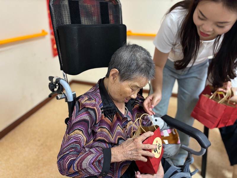 在成都拾智养老,工作人员带领老人们亲手制作月饼,从和面、包馅到烘烤,每一步都充满了乐趣与成就感。张院长还贴心地为每位老人准备了小礼物,并亲手送到他们手中,这份心意让老人们感动不已。