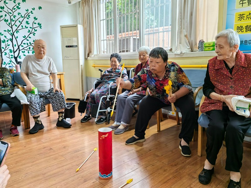 攀枝花德铭菩提养护院的中秋节庆祝活动同样丰富多彩,套圈、投壶等传统游戏让老人们玩得不亦乐乎。此外,养护院还特意为近期过生日的老人举办了生日会,让这份双重的喜悦更加浓厚。
