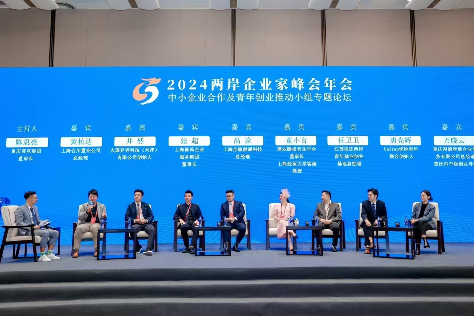 作为年会的重要活动之一,中小企业合作及青年创业推动小组专题论坛以“彩绘青春 色泽两岸”为主题,吸引了60余位两岸产业专家、台青创业者与会。井然先生在专题论坛上讲述了自己的创业故事,因为感受到大陆的飞速发展和蓬勃活力,他在大学毕业后毅然选择到大陆发展。15年来,在养老服务行业,他从最初在天津经营一间小小的养老院,到现在已打造了自己的养老品牌,连锁养老院已延伸到四川、云南、贵州以及广东等省份。井然先生表示:“在祖国民生服务、养老服务这样一个市场当中,中国大陆的老龄人口市场规模一定是首选。现在我已经成家立业,两个小朋友,太太都在这边,所以我是非常感谢政府、包括这么庞大的一个市场,给我一个成家立业的土壤。”