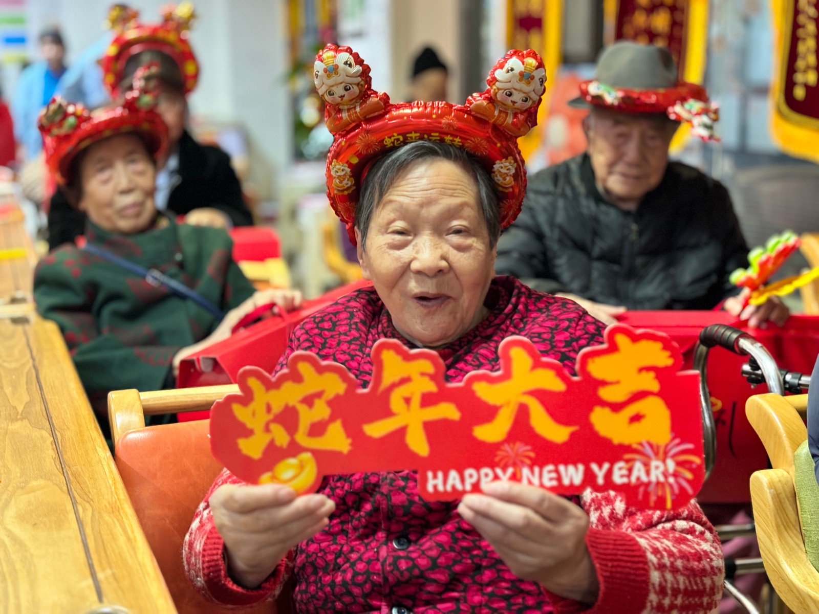 在成都拾智养老,春节联欢活动以“新春游园会”的形式展开。工作人员为长者们准备了一轮轮丰富的游戏,既有传统的猜谜语、套圈,也有新颖的动手动脑游戏。游园会现场,欢声笑语不断,长者们仿佛回到了童年,尽情享受着游戏的乐趣。