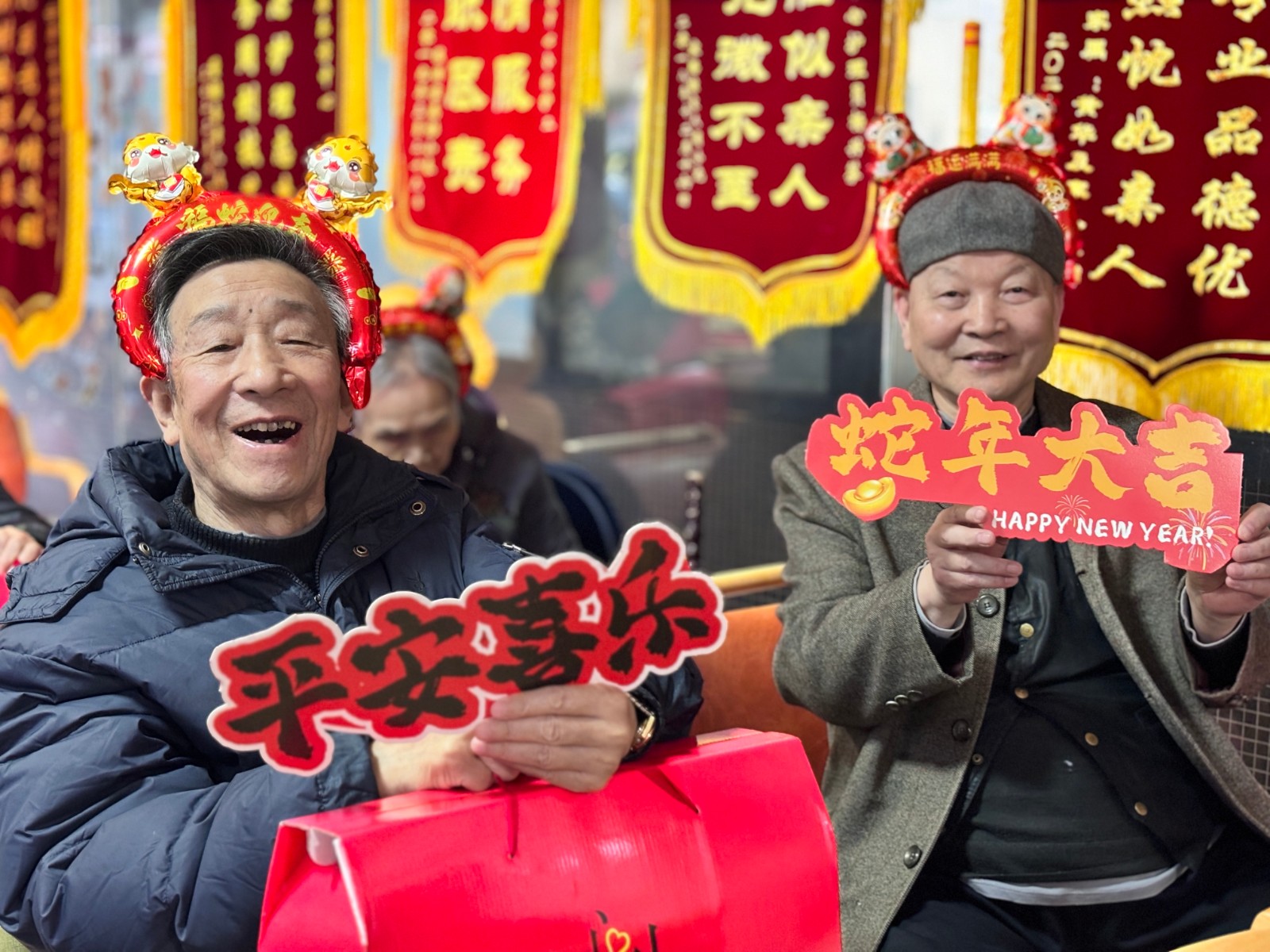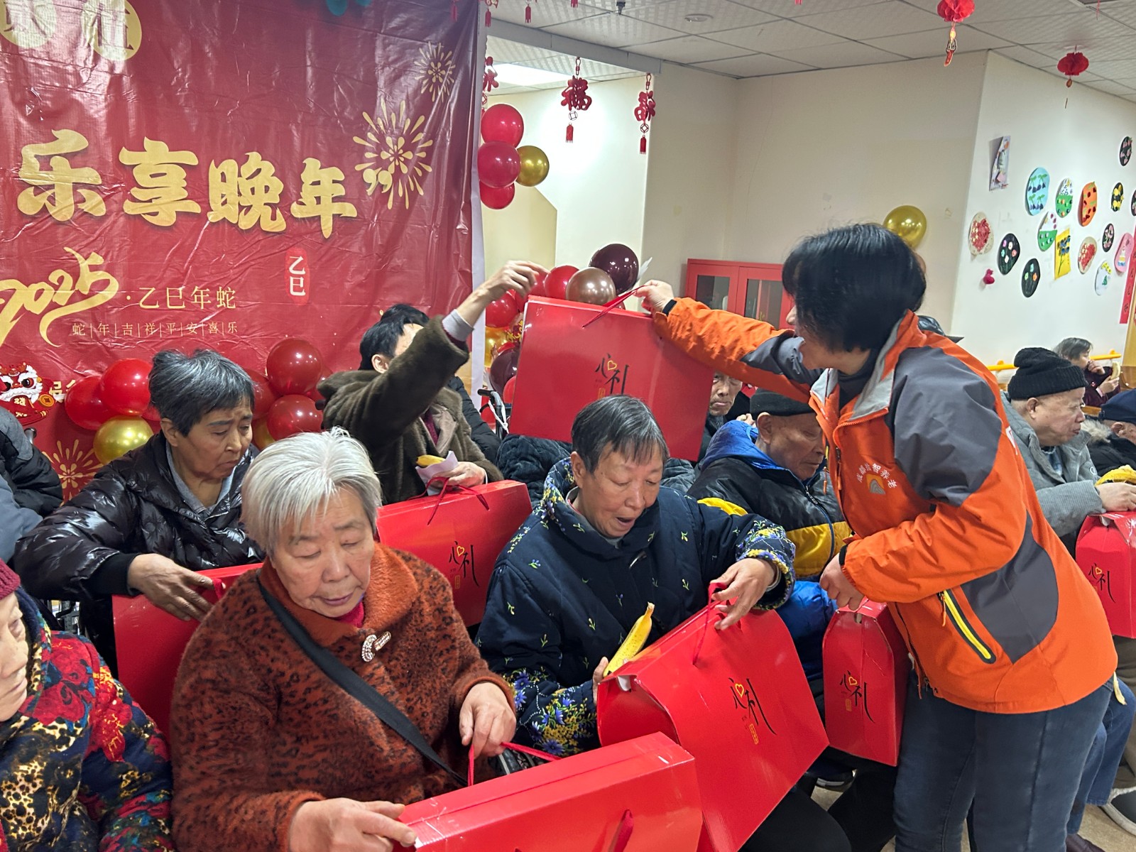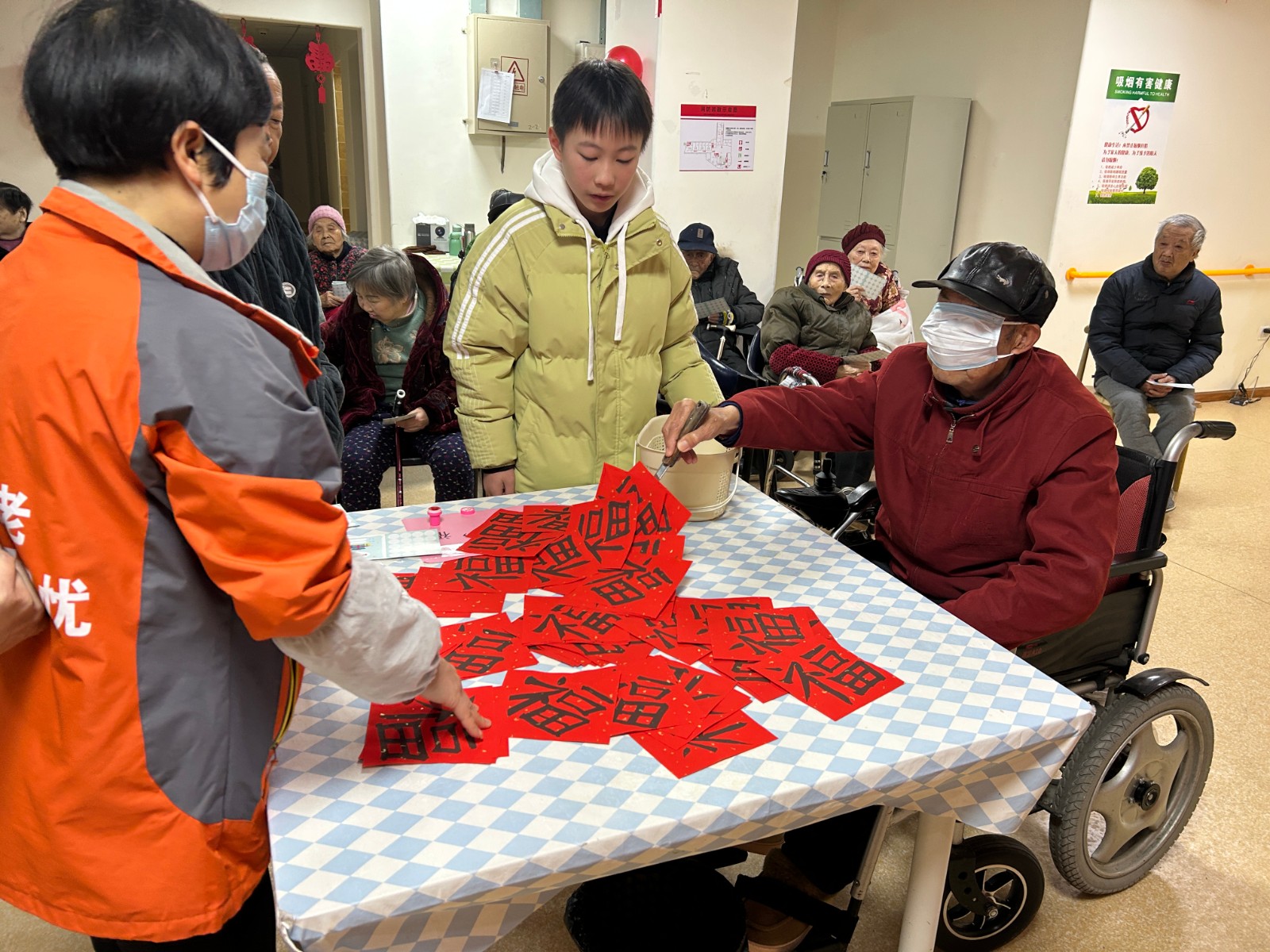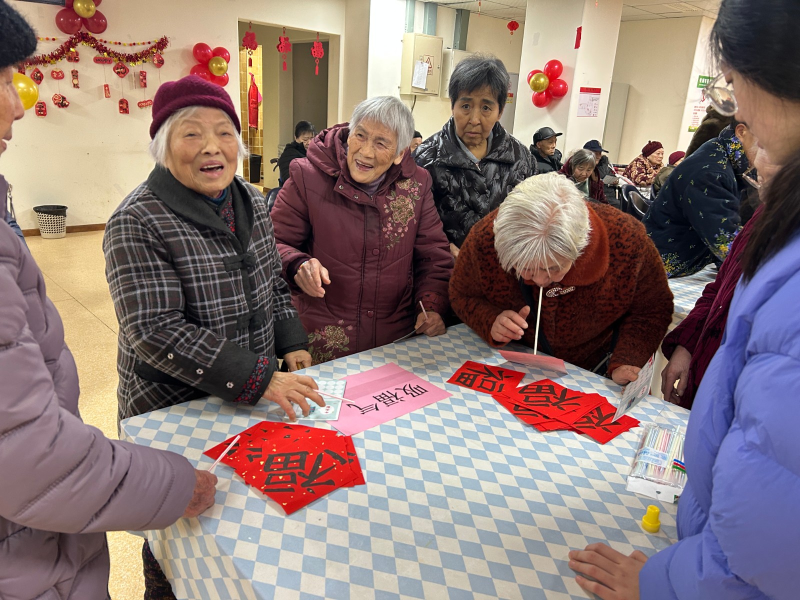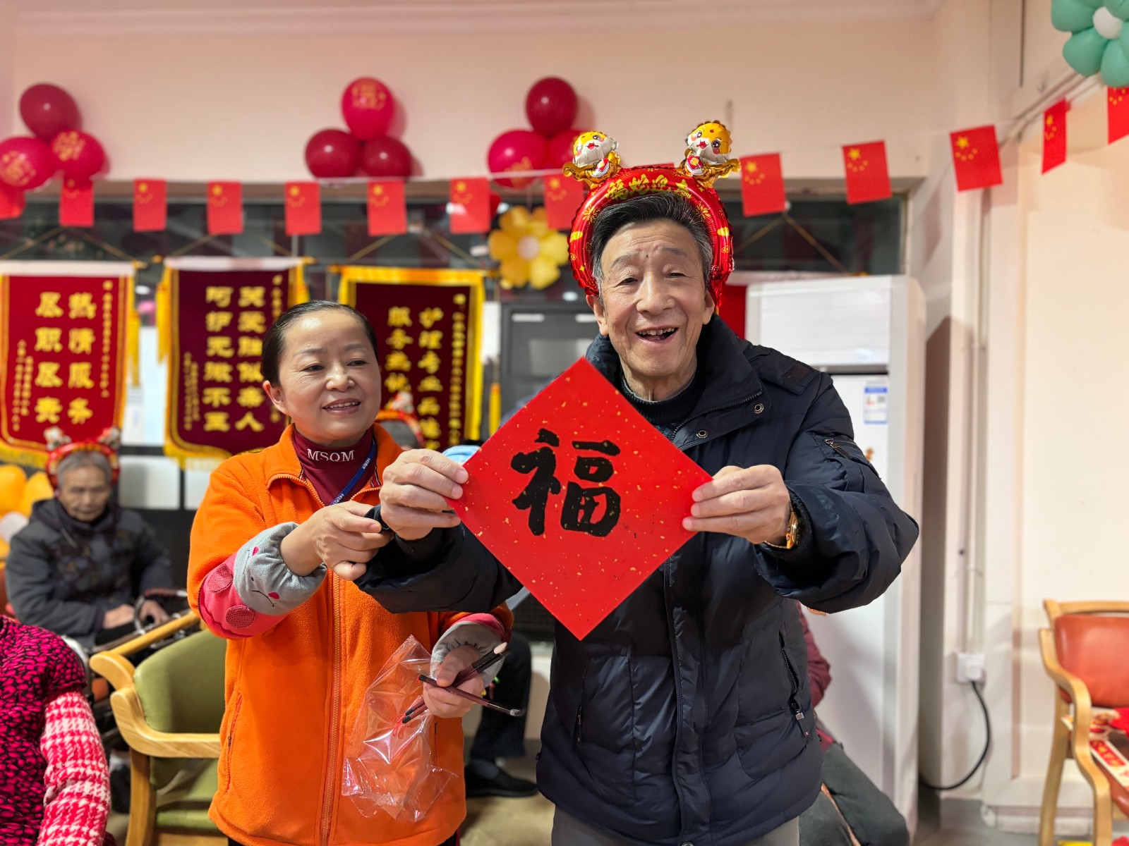 除了精彩的节目,现场还设置了互动环节。爷爷奶奶们兴致勃勃写起来福字,笑声不断。活动最后,工作人员还为长者送上了精心准备的新春礼物,祝福他们健康长寿,幸福安康。