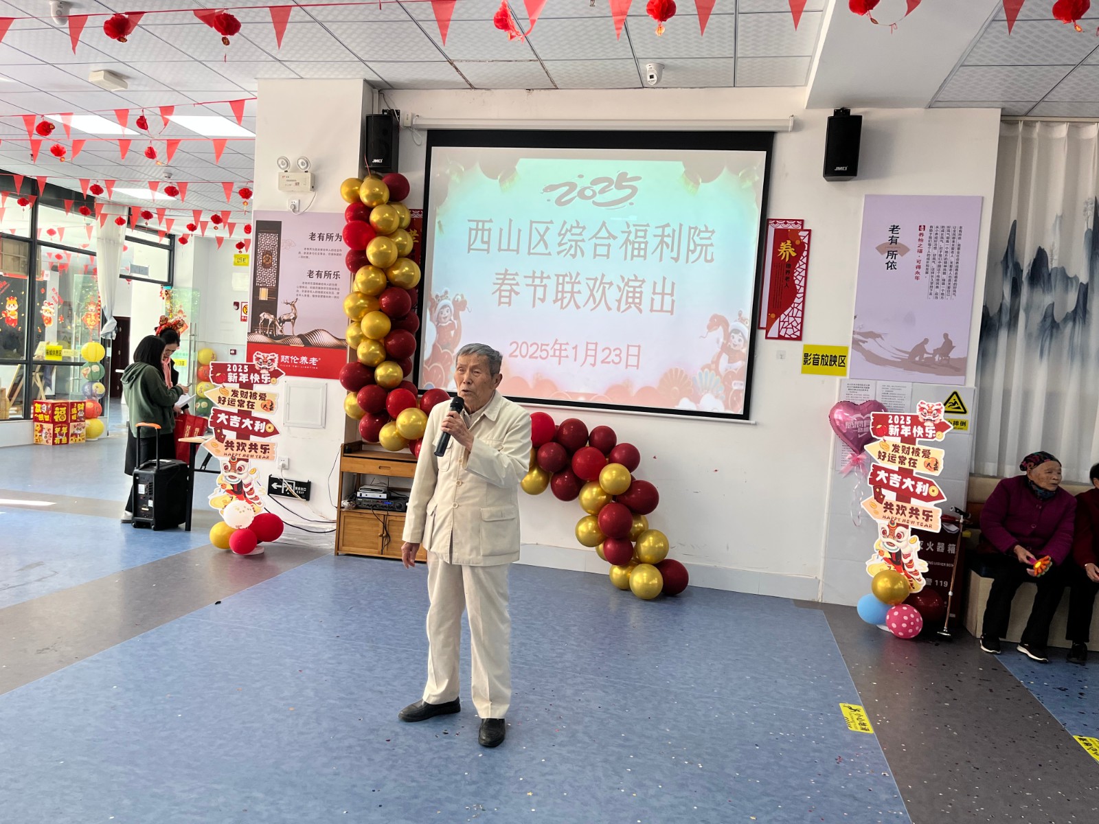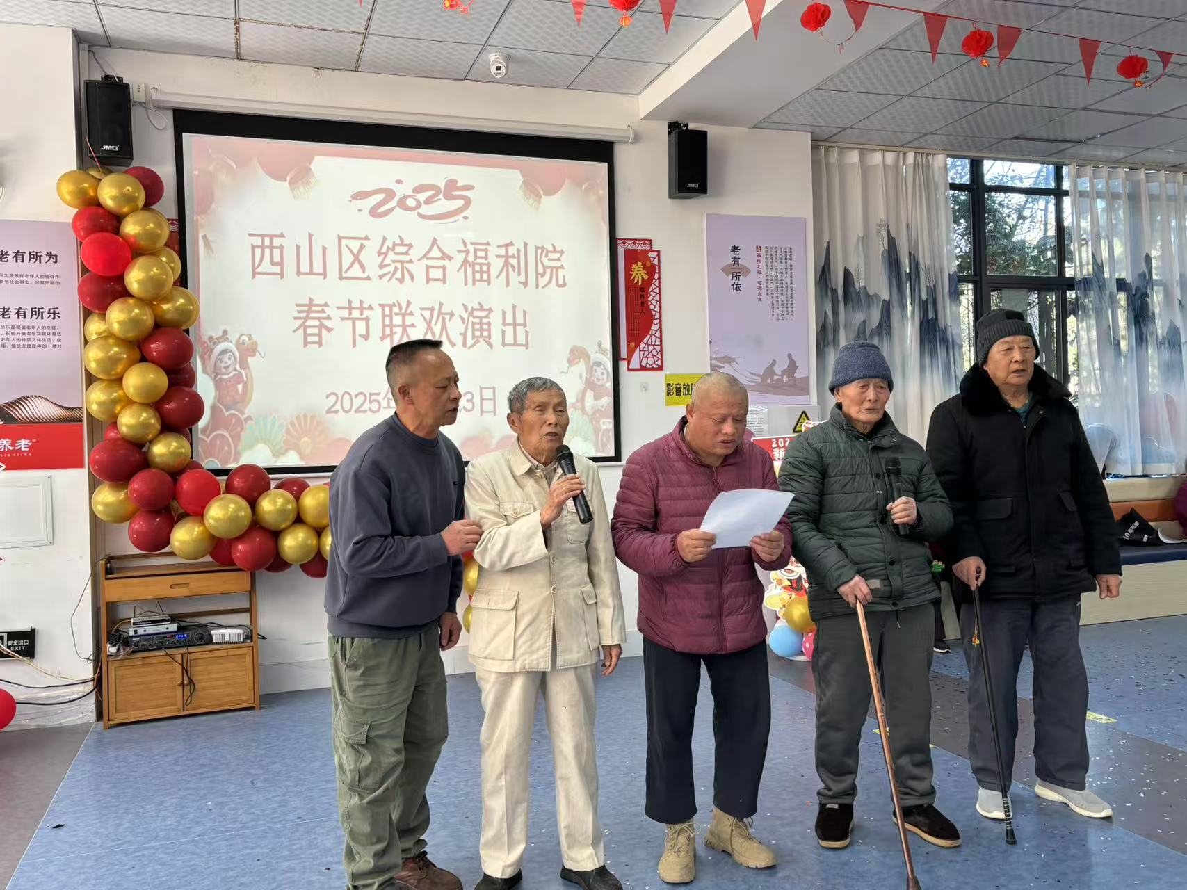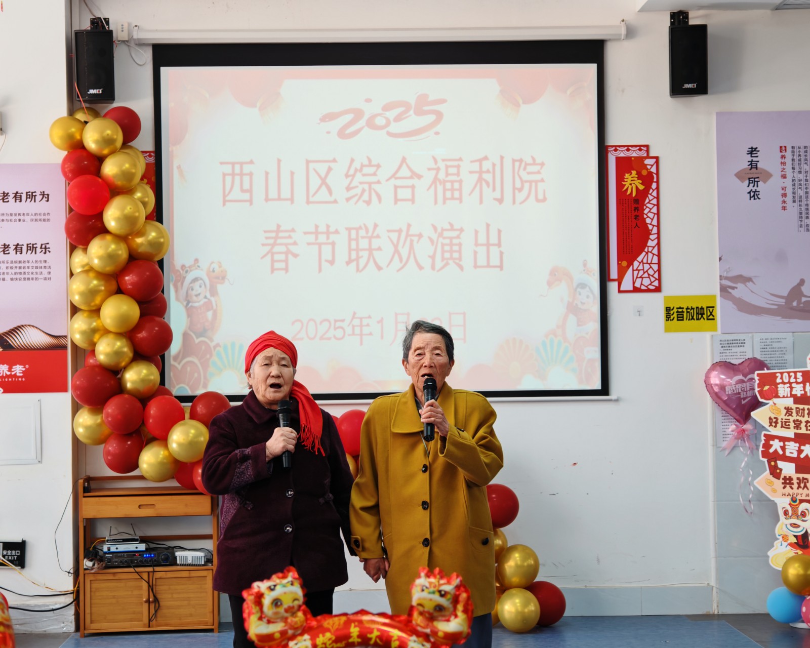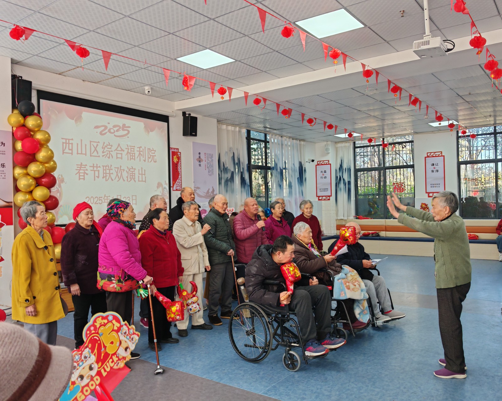 在昆明西山区综合福利院,春节联欢活动同样热闹非凡。工作人员和长者们一同联合,精心准备了丰富多彩的节目。爷爷奶奶们虽然年事已高,但依然精神矍铄,他们载歌载舞,唱起了经典的老歌,还在工作人员的陪伴下扭起来秧歌,仿佛回到了年轻时的美好时光。工作人员也带来了精彩的节目,与长者们互动,现场气氛热烈,掌声不断。活动结束后,长者们纷纷表示,这个春节过得特别开心,感受到了家的温暖和节日的喜庆。
