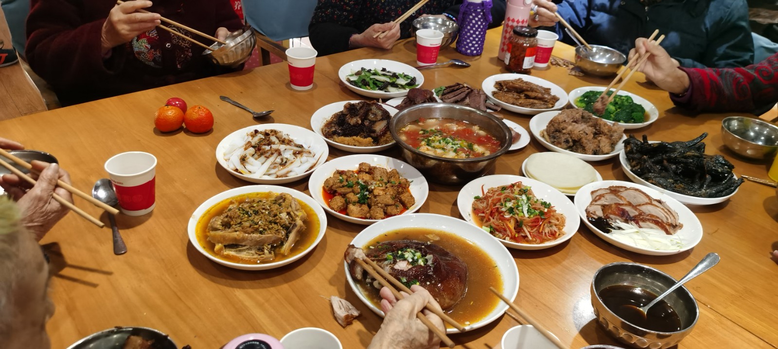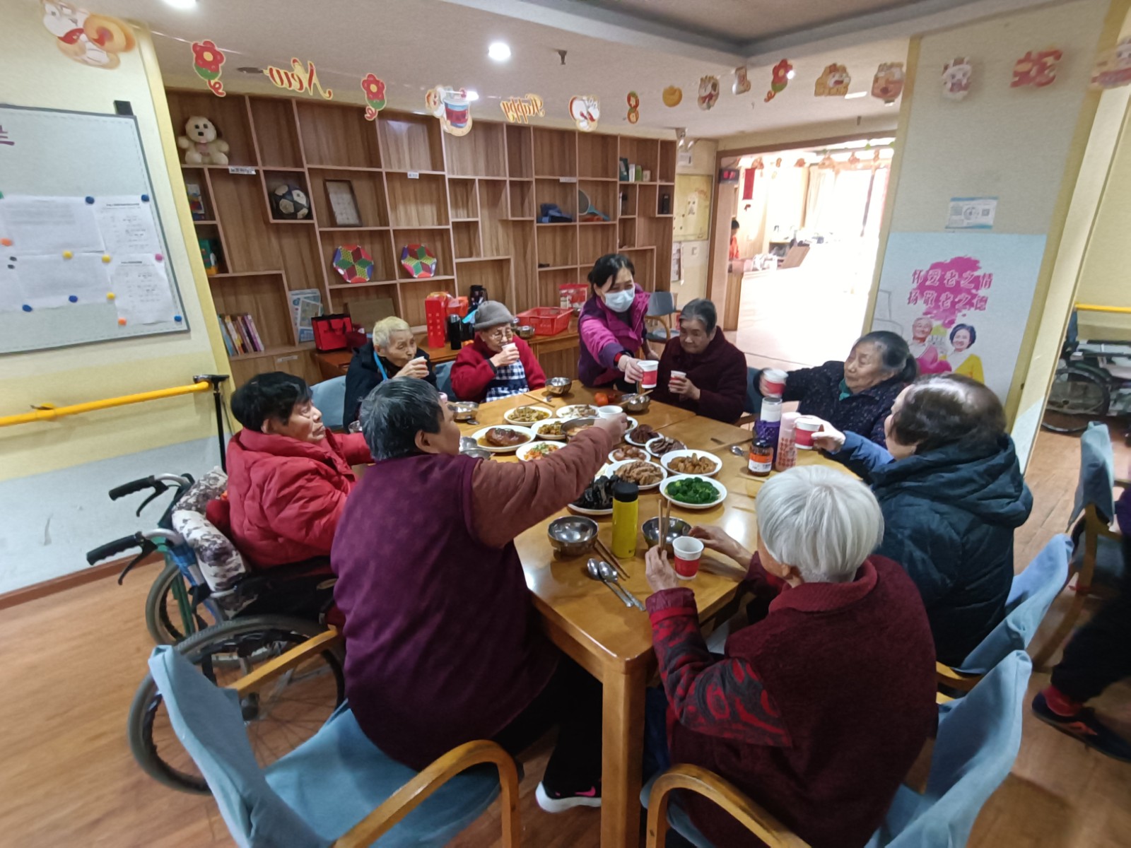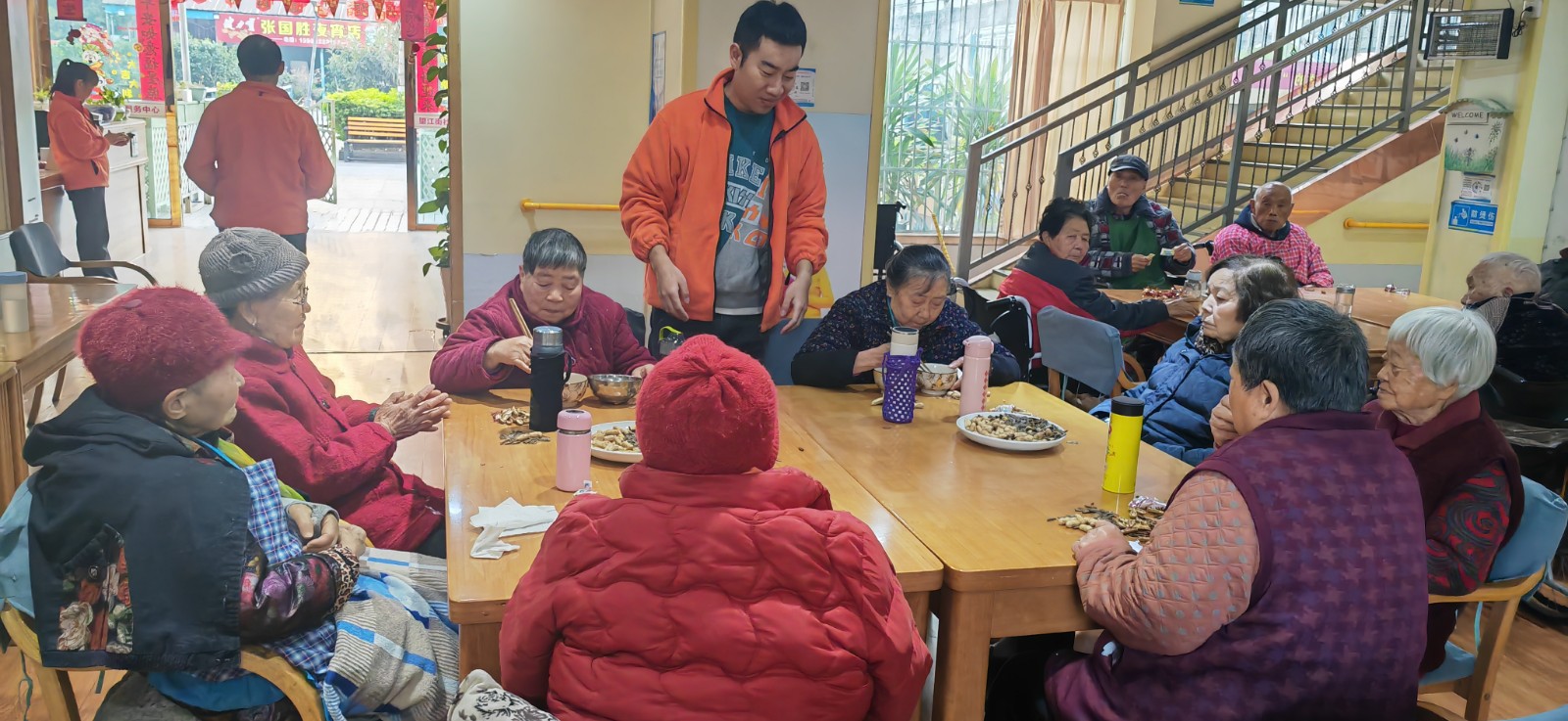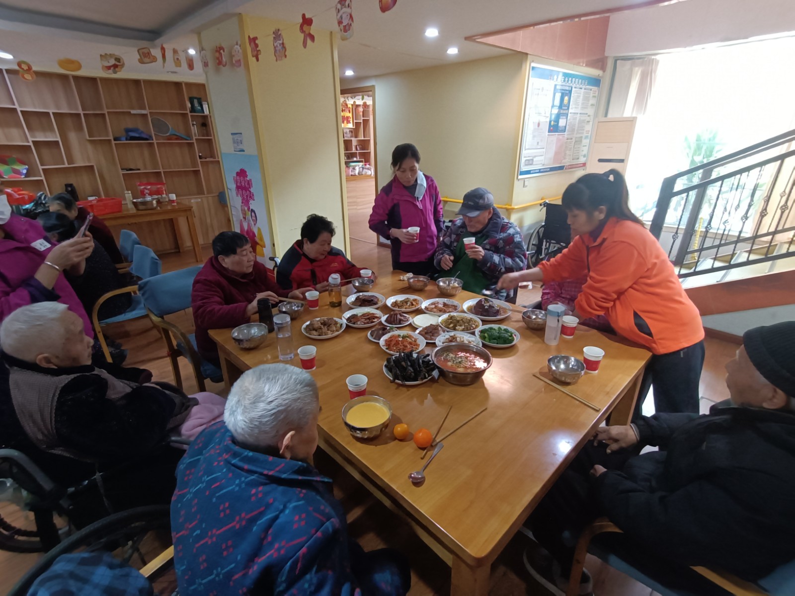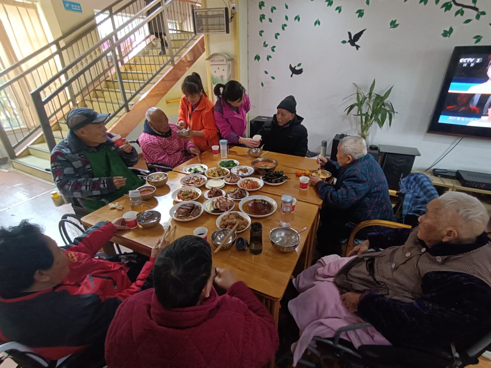 在攀枝花德铭菩提养护院,春节联欢活动的重头戏是团年饭。工作人员为长者们精心准备了一桌丰盛的饭菜,席间不断为老人们挟菜添饭,关怀备至。老人们个个喜笑颜开,感受到了浓浓的节日氛围。