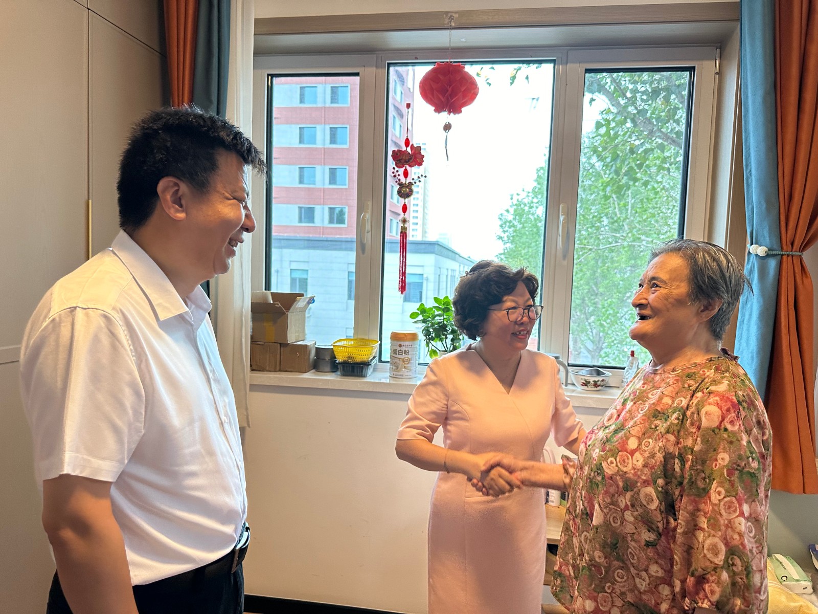 7月15日,天津市台办主任靳凡、市纪委监委驻市委统战部纪检监察组副组长蒋宝菊等一行,专程来到陶煦养老照护中心,开展走访慰问活动。陶乐养老创始人井然先生及陶煦养老照护中心朱宝霞院长热情接待并陪同。