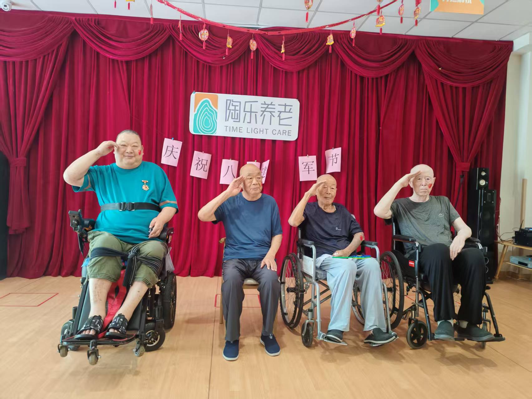 为庆祝中国人民解放军建军98周年,陶乐养老各分院精心策划了丰富多彩的主题活动,向曾经用青春守护山河的老兵们致以崇高敬意,也把这份永不褪色的荣光,传递给院里的每一位长者。