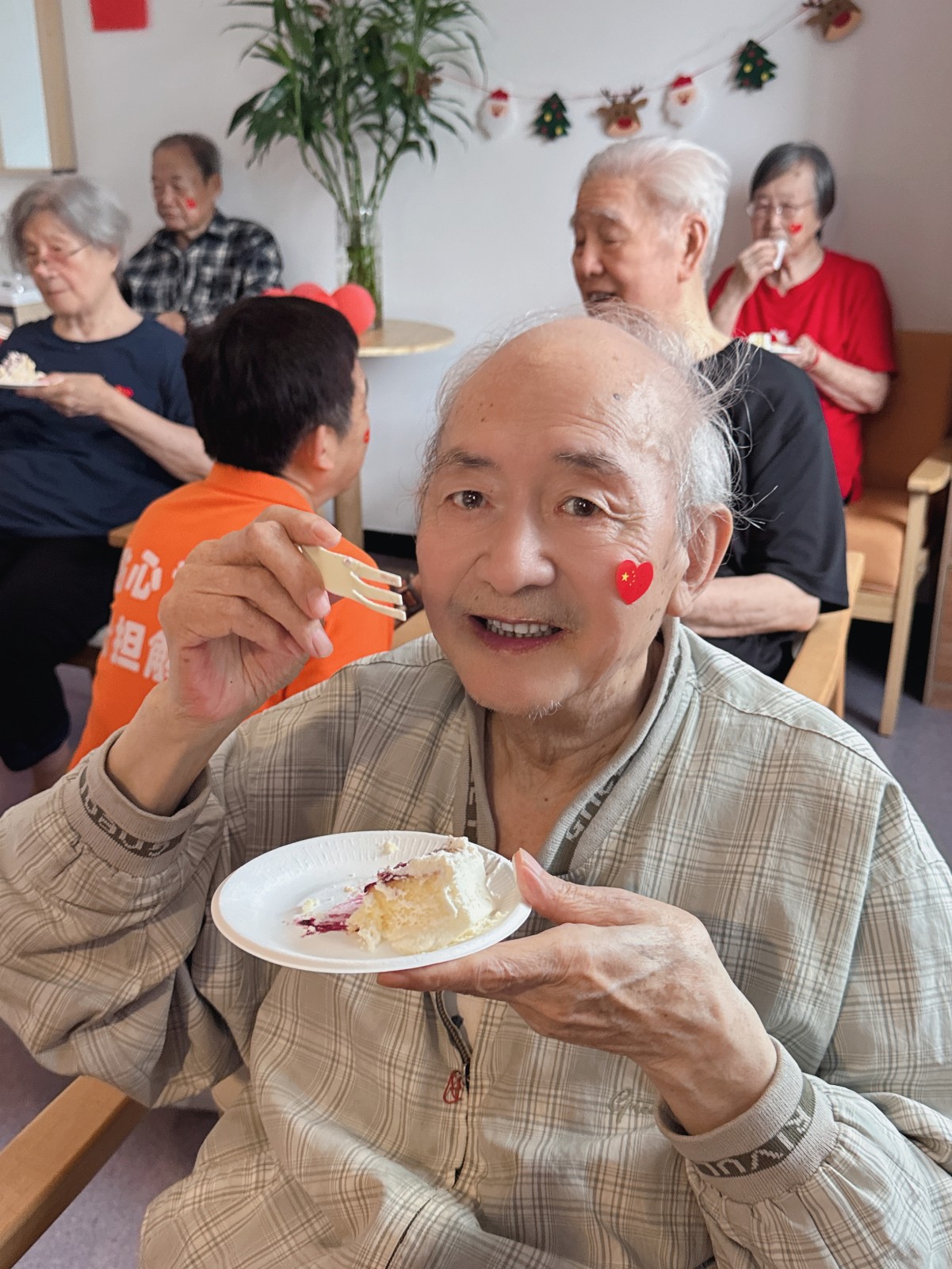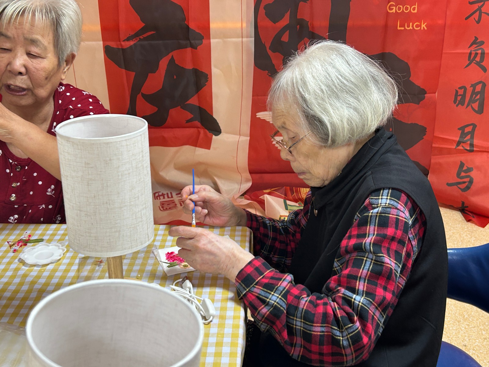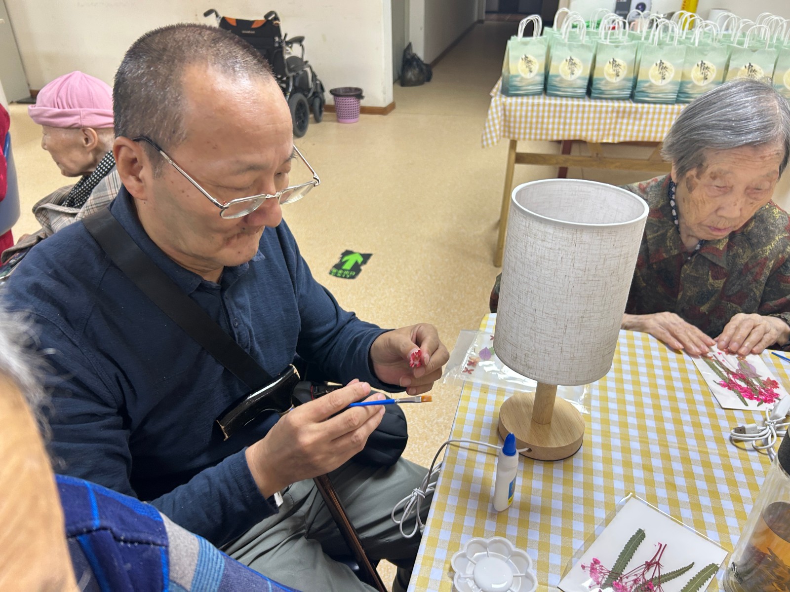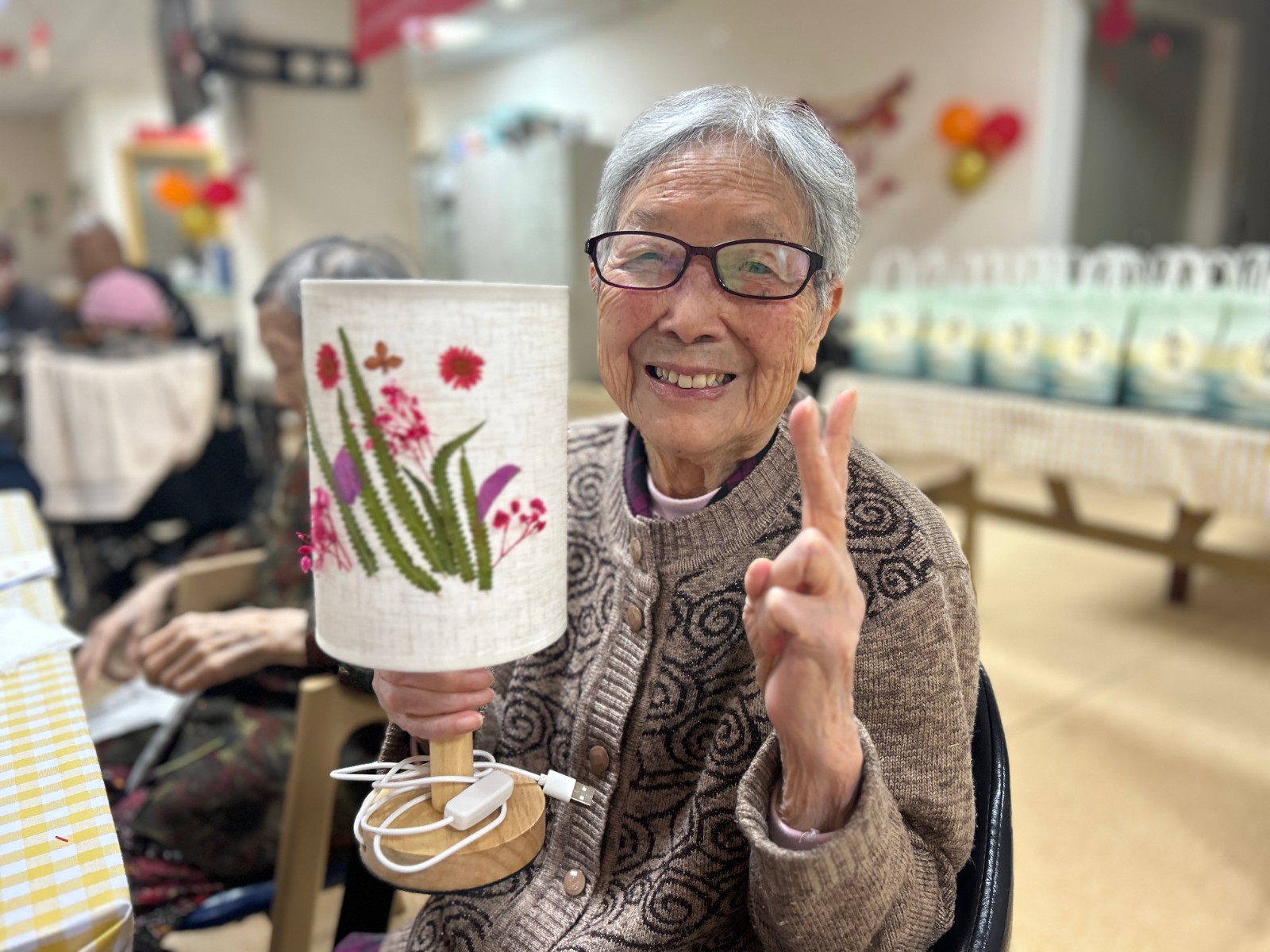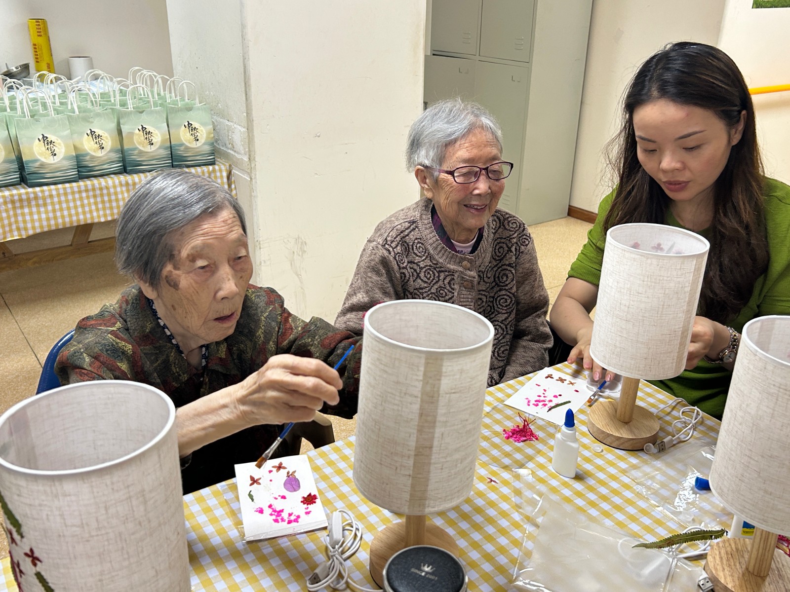 成都拾智养老的中秋国庆双节庆祝活动格外热闹。工作人员带着爷爷奶奶一起挥舞国旗高声歌唱,嘹亮的歌声传递着对祖国的深情祝福。此外,院内还开展了主题手工活动,张院长与爷爷奶奶们一起动手用干花制作手工台灯。一盏盏独具匠心的台灯,照亮了节日的夜晚,也温暖了长者们的心房。