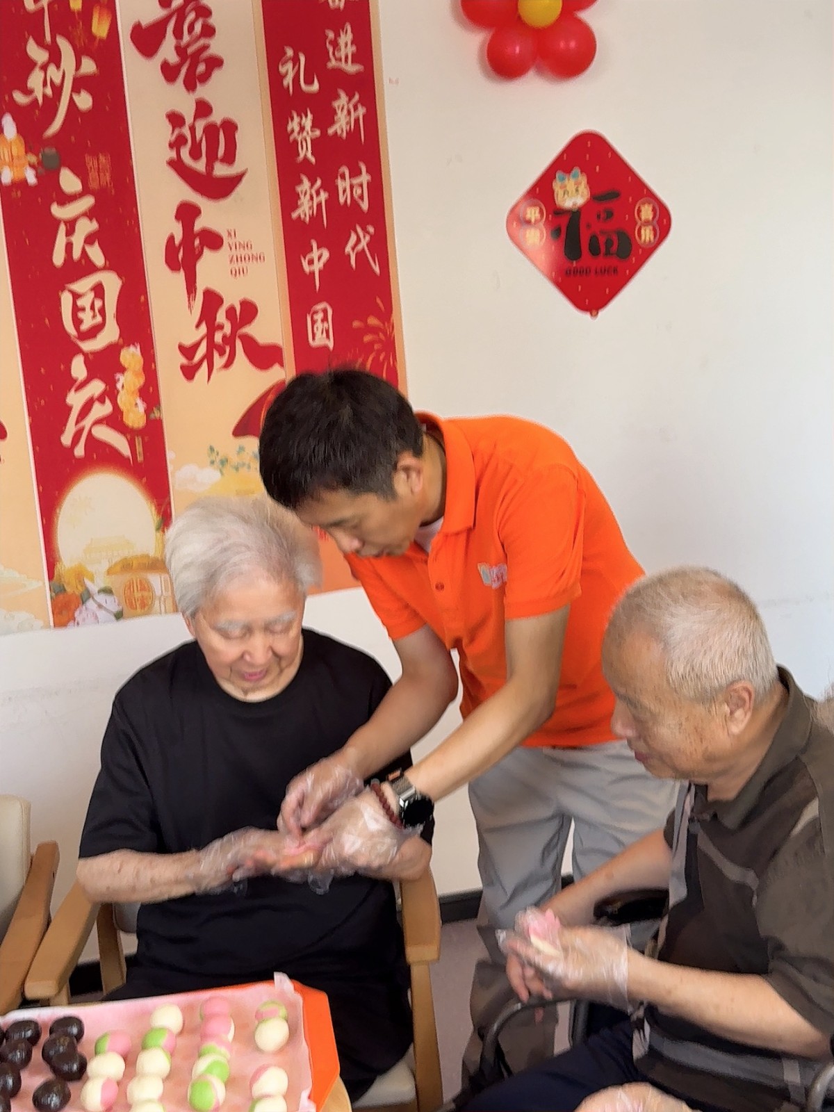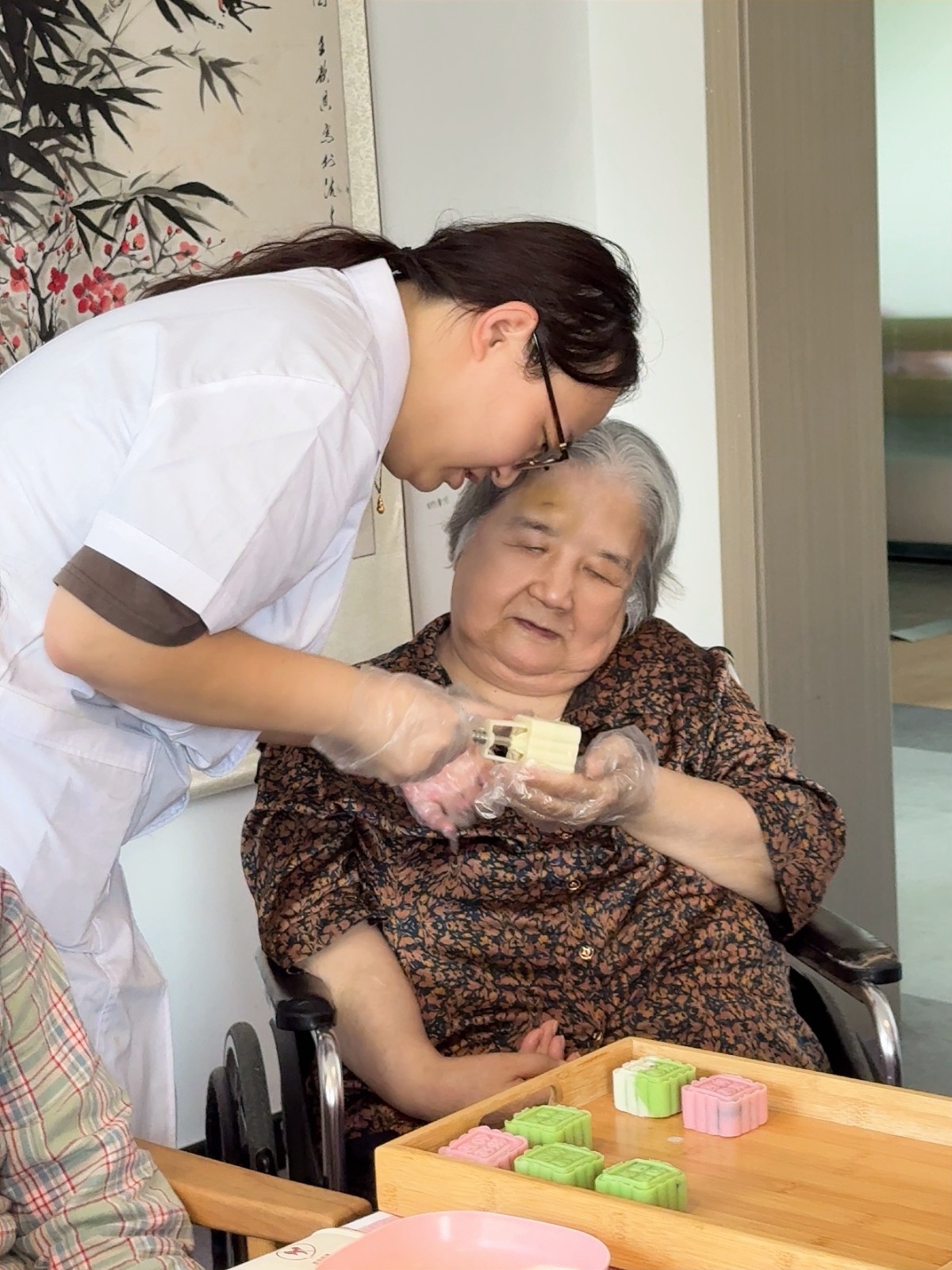 在天津陶煦养老照护中心,工作人员组织爷爷奶奶们亲自动手制作手工月饼。和面、包馅、压模,每一个步骤都充满了欢声笑语。当一个个精美的月饼从模具中取出,长者们脸上洋溢着孩童般的喜悦。这些亲手制作的月饼不仅美味,更承载着浓浓的节日情谊。
