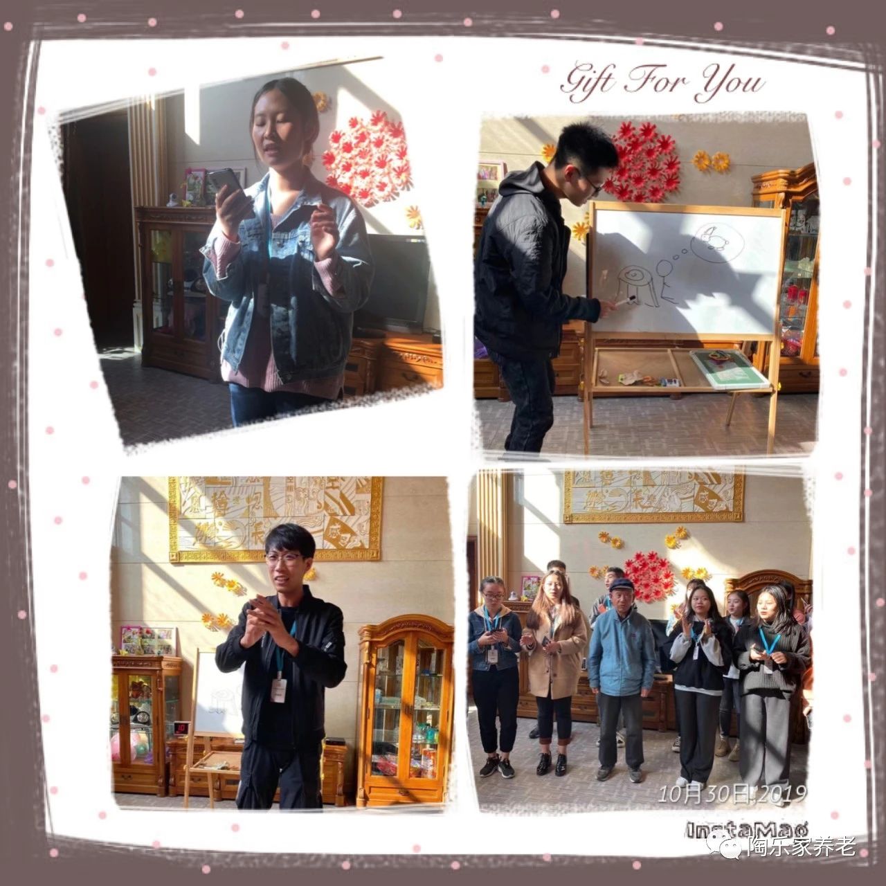 2019年10月26日陶乐家滨海新区院舍迎来了外国语学院的志愿者们来我院慰问老人们并带来了精彩节目,入冬的季节里为老人们带来了欢乐和陪伴,爷爷奶奶们高兴的脸上乐开了花!