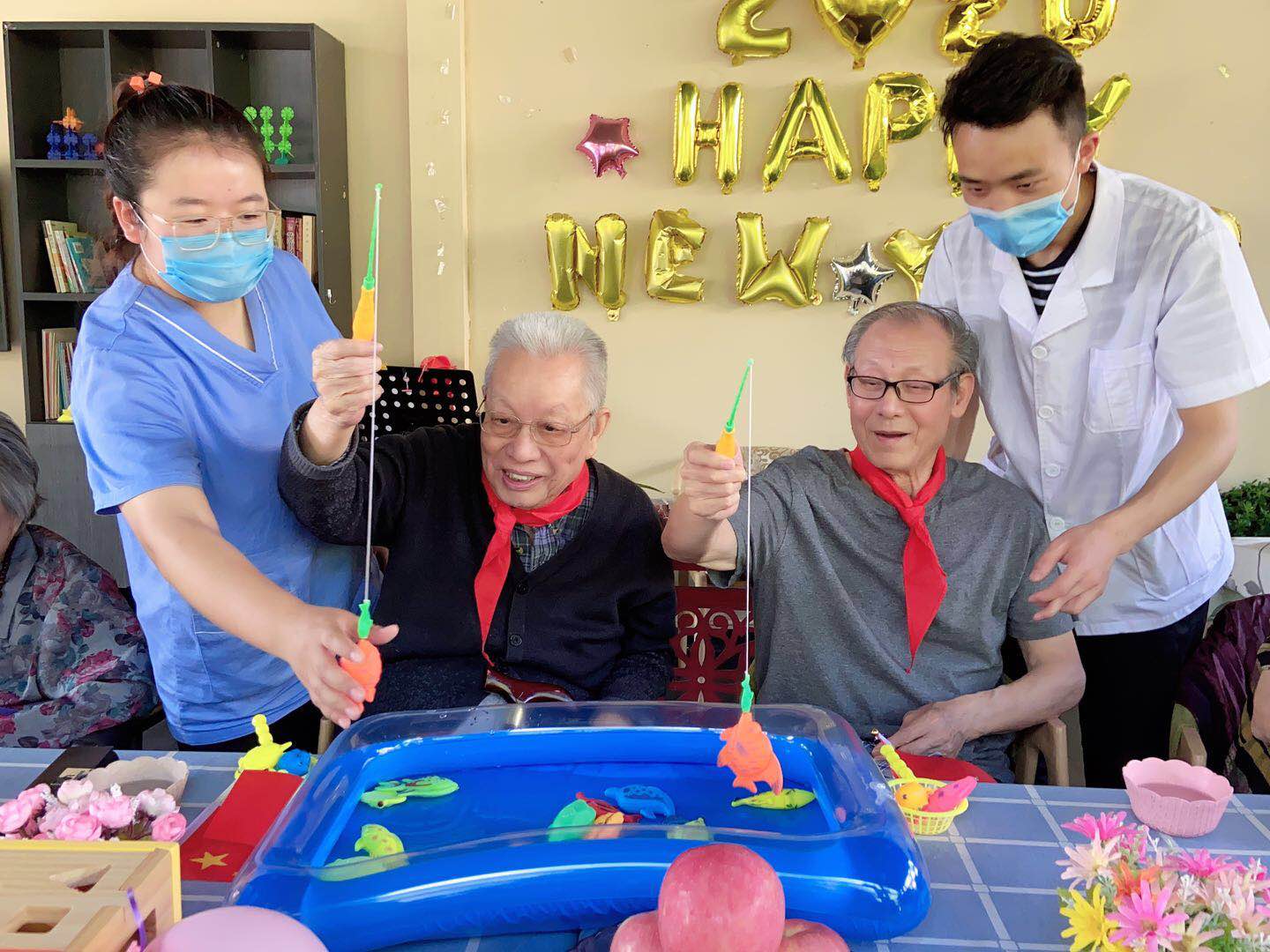 恋恋童趣,纯纯童真,美美童话,皎皎童心,在老小孩们心中仍然可以快乐无极限,南开养老院舍和西青养老院舍在儿童节当天为老人们准备了年少时带的鲜艳的红领巾,让老人们仿佛又回到少年时,向少年时的自己敬礼,照护人员陪老人一起游戏做手工,爷爷奶奶们露出了天真无邪的笑容。