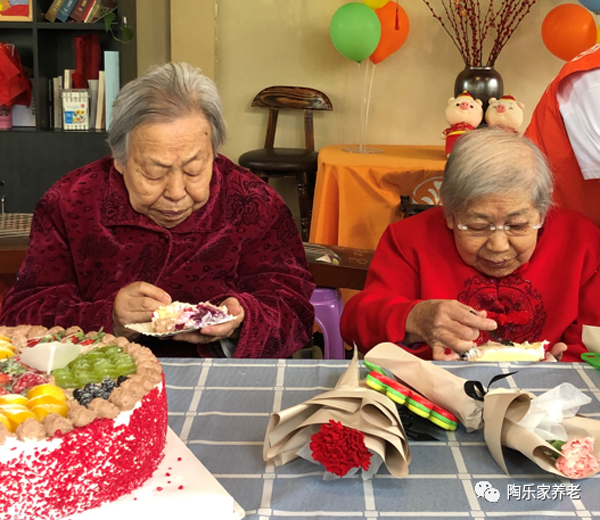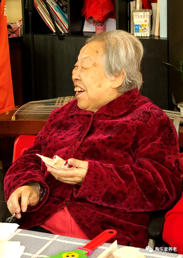 幸福的时光总是少不了美食烘托,低糖蛋糕也给长者们带来了别样的甜蜜,对于独自进食不便的长者,陶乐家的护理人员一口口进行喂食。