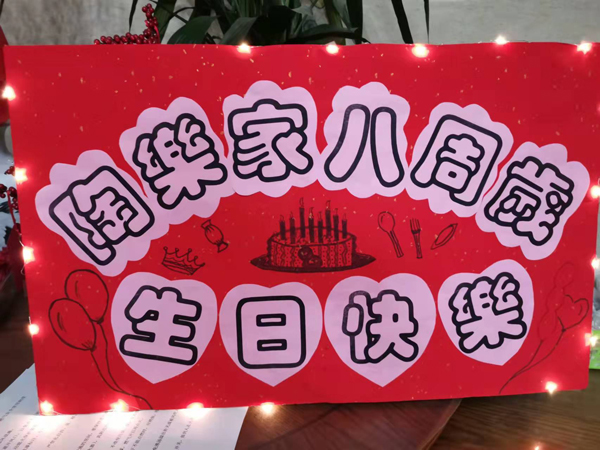 滨海分院的任院长亲自绘制了生日会的灯牌,把活动现场装饰得温馨又热闹。